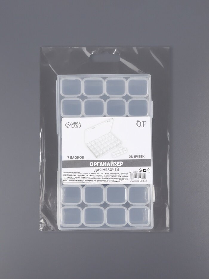 10 цен на Органайзер для декора, 7 блоков, 4 ячейки, 17.5×10.5×2.7 см, прозрачный