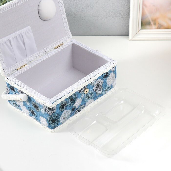 Отзывы на 3 шт. Шкатулка для рукоделия и шитья «Чёрно-белые цветы на голубом», хранение ниток, иголок, мелочи, 24×16×11 см