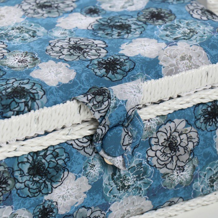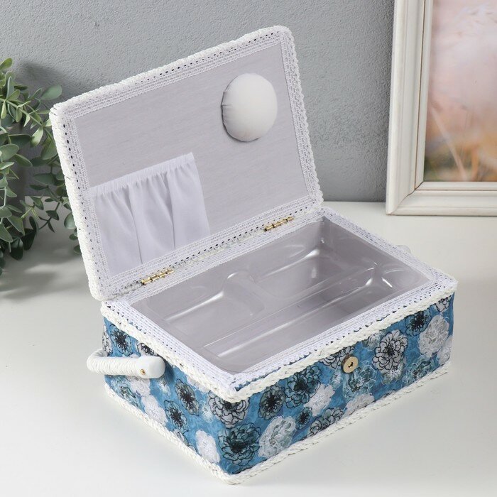 10 цен на 3 шт. Шкатулка для рукоделия и шитья «Чёрно-белые цветы на голубом», хранение ниток, иголок, мелочи, 24×16×11 см