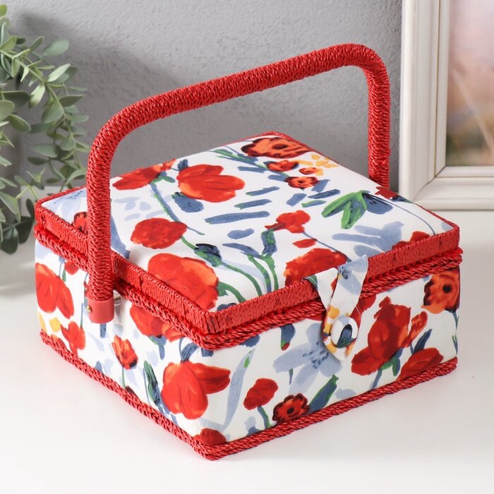 10 цен на Шкатулка для рукоделия и шитья «Летние цветы на белом», хранение ниток, иголок, мелочи, 20х20х11 см