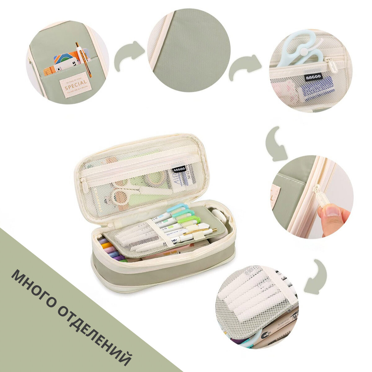 Отзывы на Пенал школьный, органайзер для канцелярии, расширяемый размер, цвет зеленый