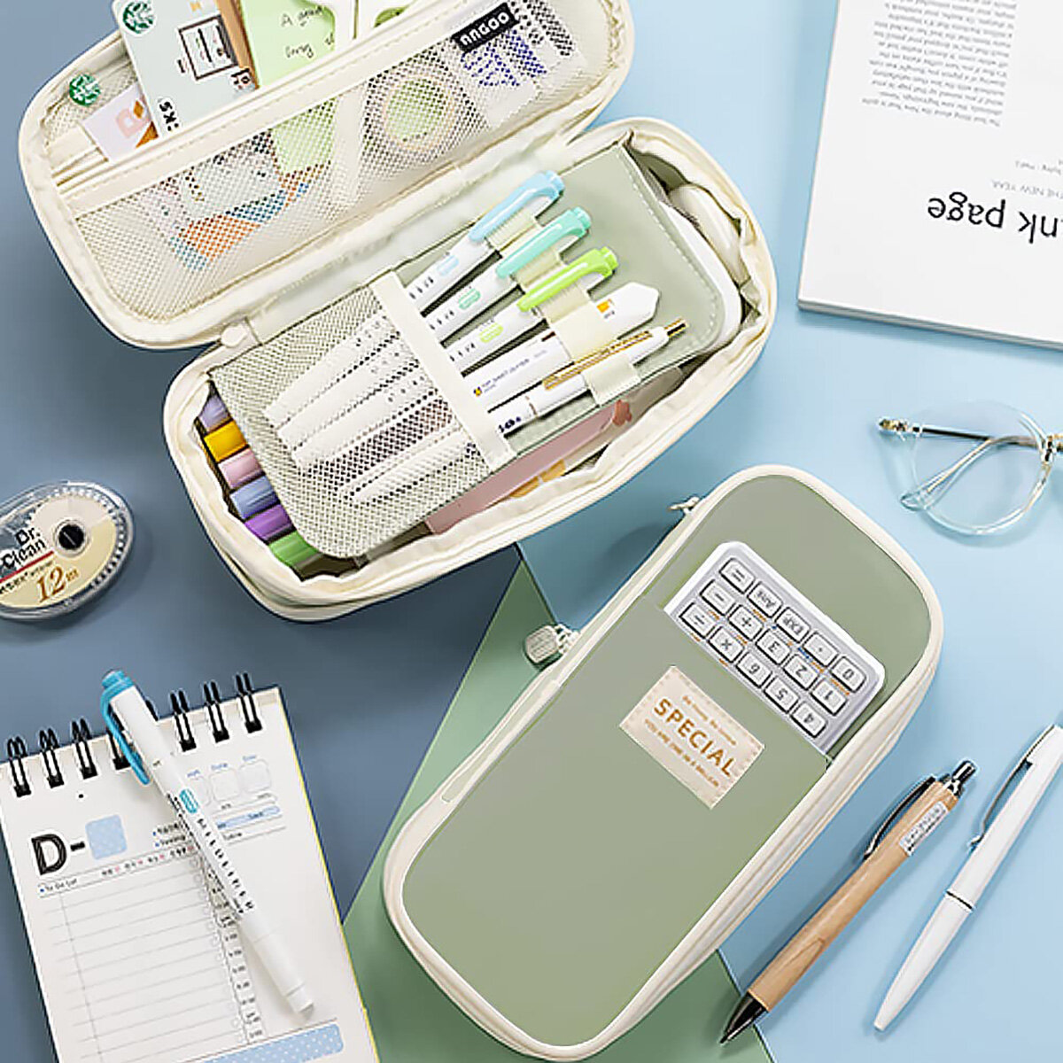 10 цен на Пенал школьный, органайзер для канцелярии, расширяемый размер, цвет зеленый