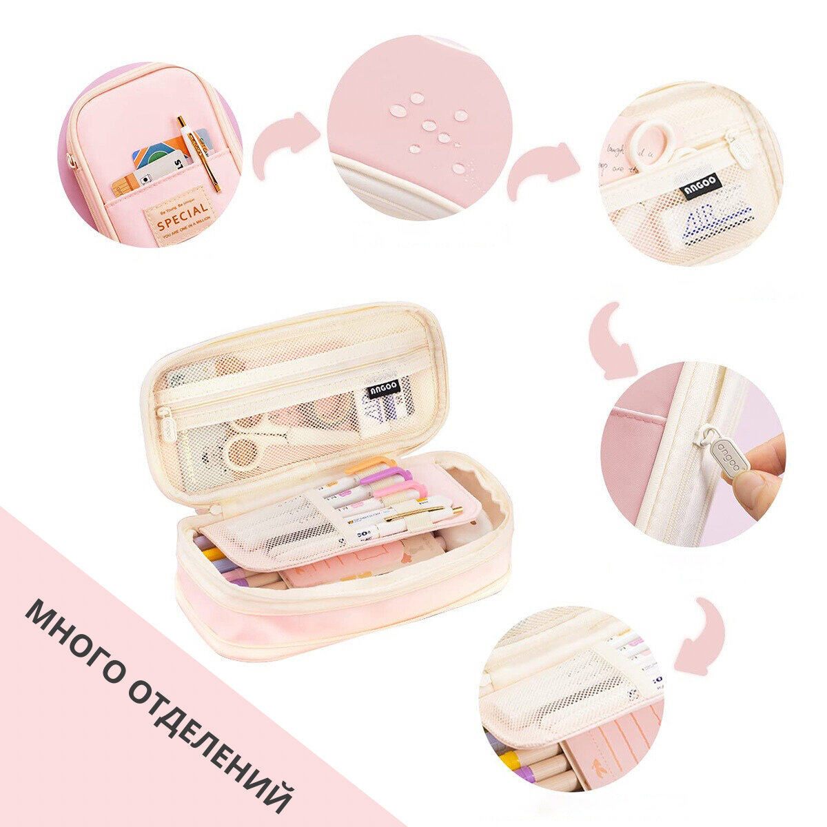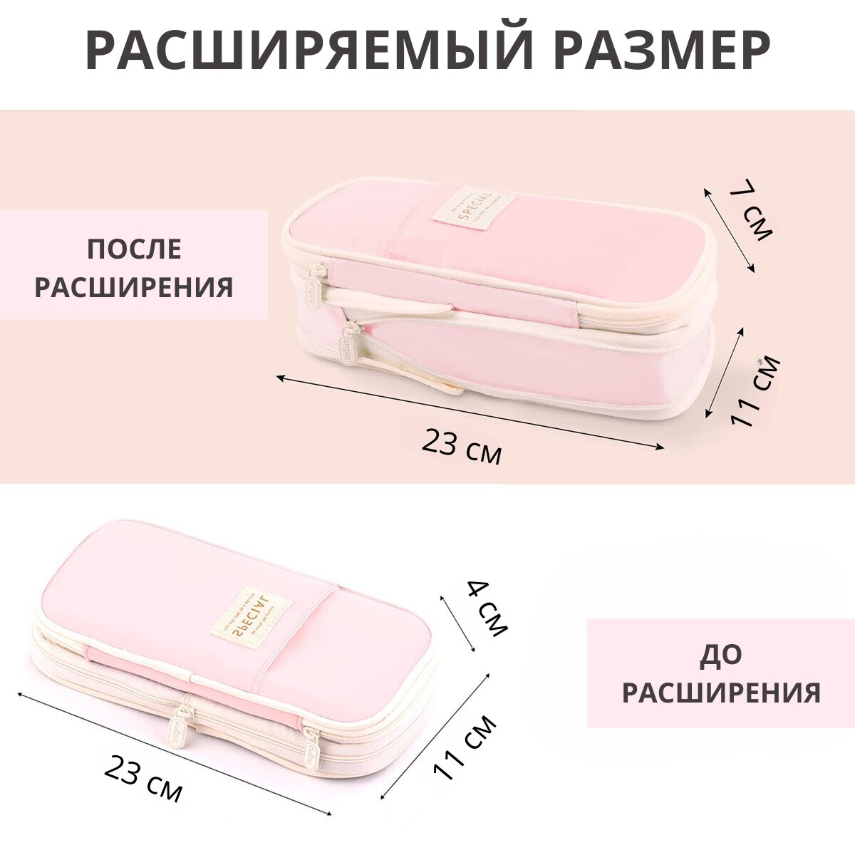 Отзывы на Пенал школьный, органайзер для канцелярии, расширяемый размер, цвет светло-розовый