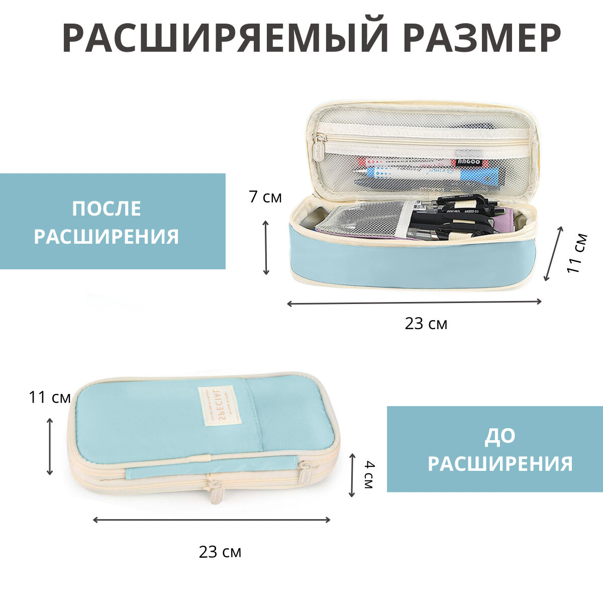10 цен на Пенал школьный, органайзер для канцелярии, расширяемый размер, цвет голубой