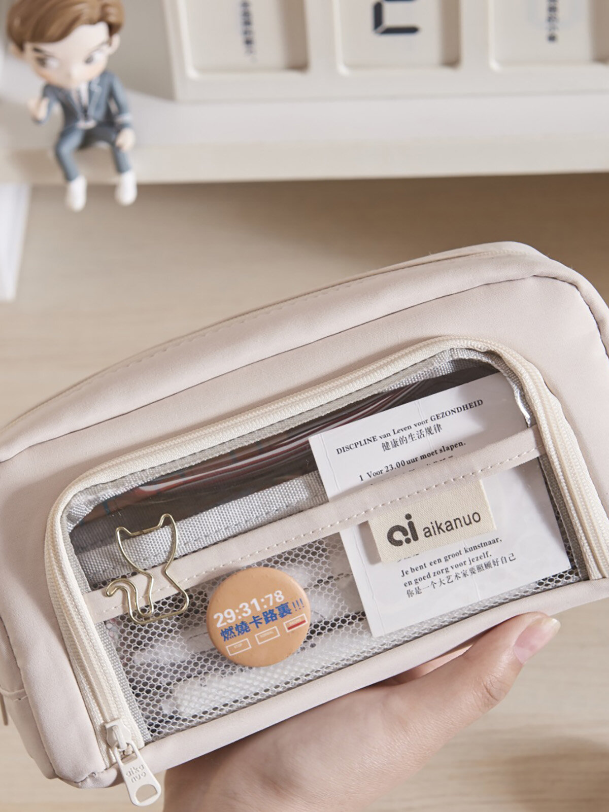 Пенал школьный для девочек и мальчиков, котик бежевый