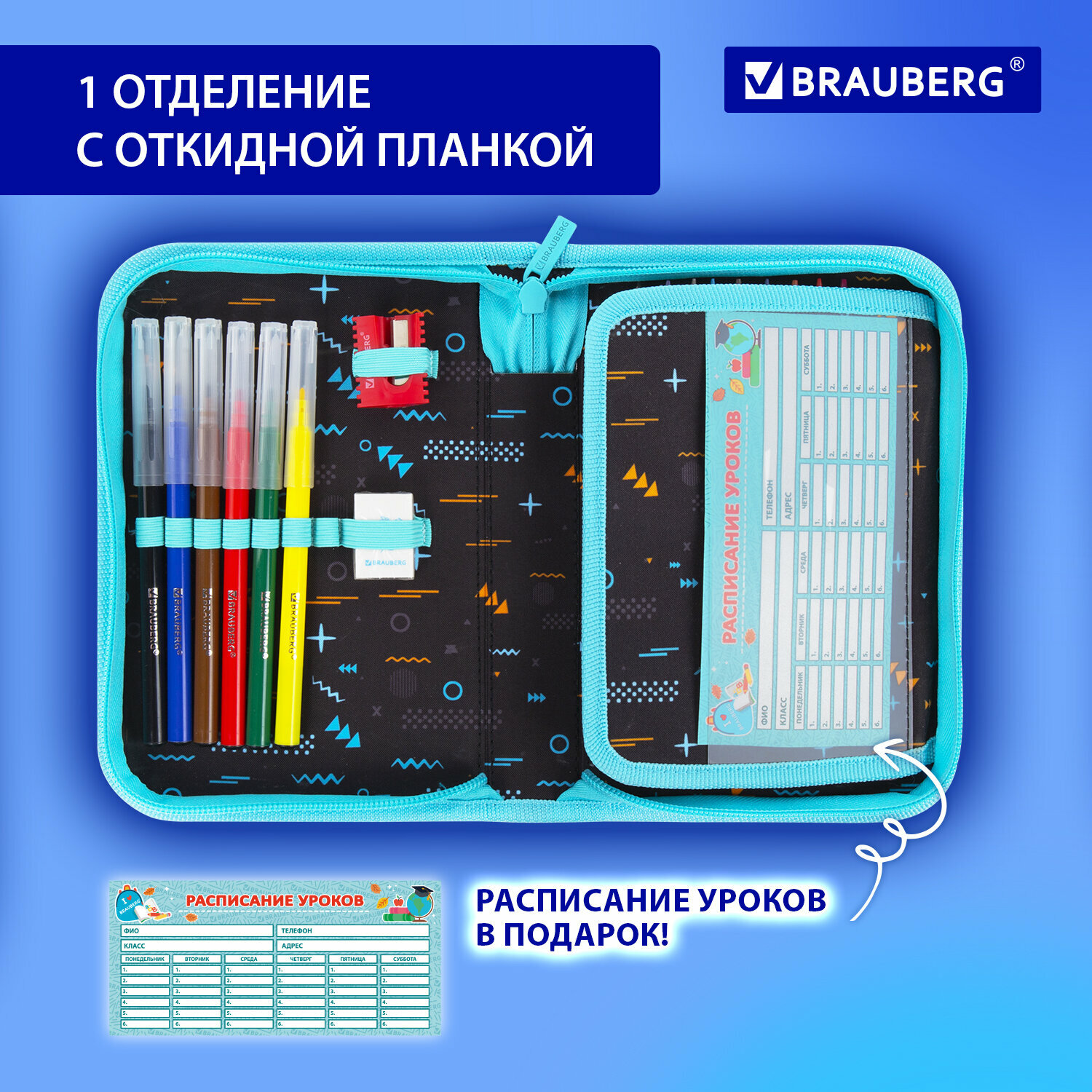 Пенал Brauberg с наполнением, 1 отделение, 1 откидная планка, 24 предмета, 21х14 см, Play sleep repeat, 272353 информация: