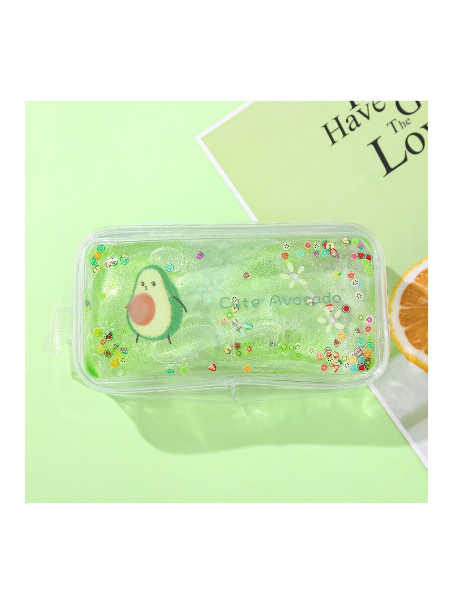 10 цен на Пенал МихиМихи "Авокадо" с жидкостью и блестками, на молнии, прозрачный, пластик