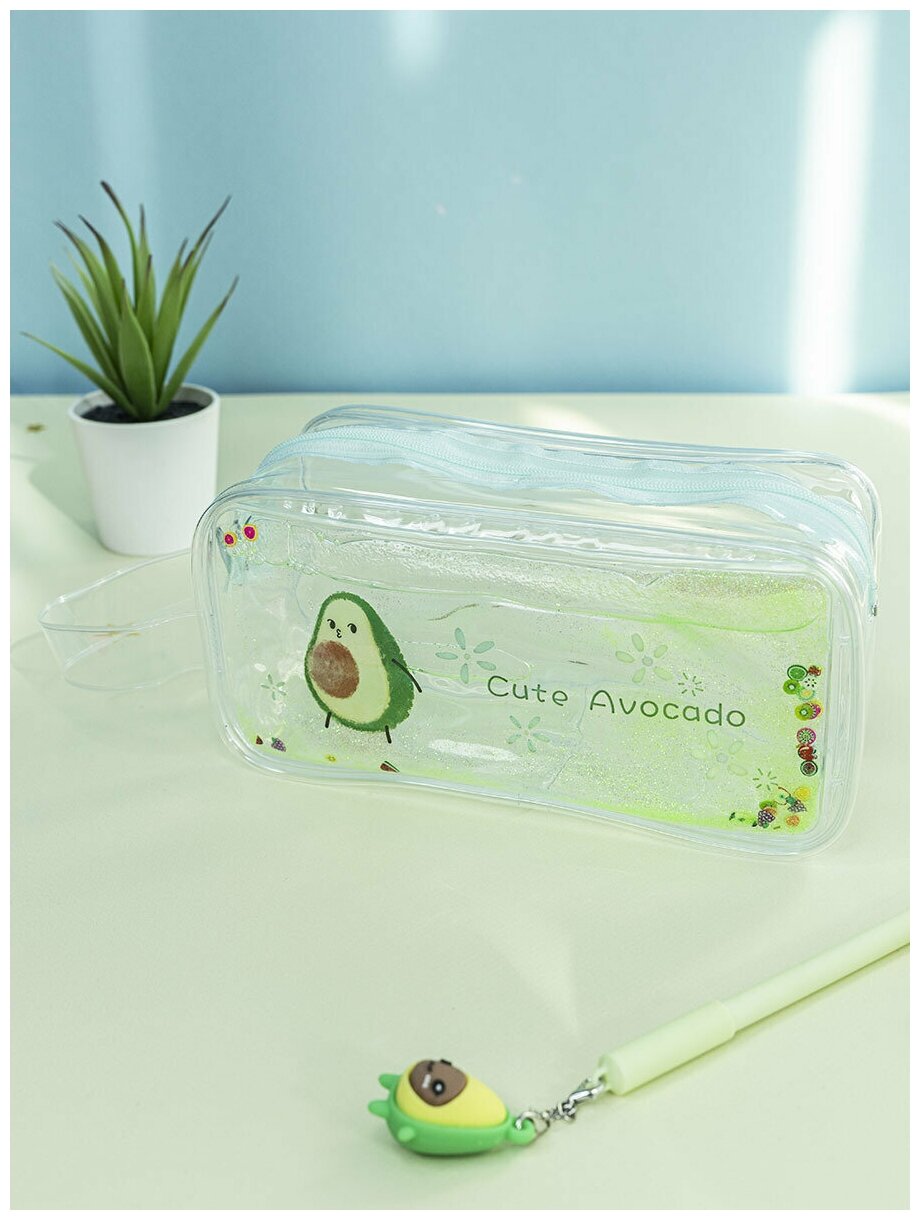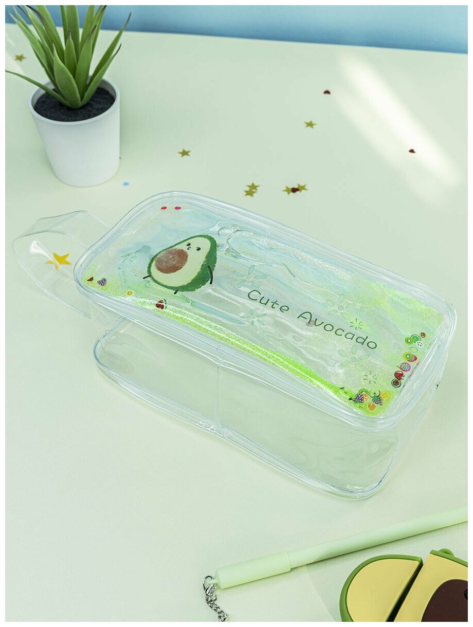 Пенал МихиМихи "Авокадо" с жидкостью и блестками, на молнии, прозрачный, пластик информация: