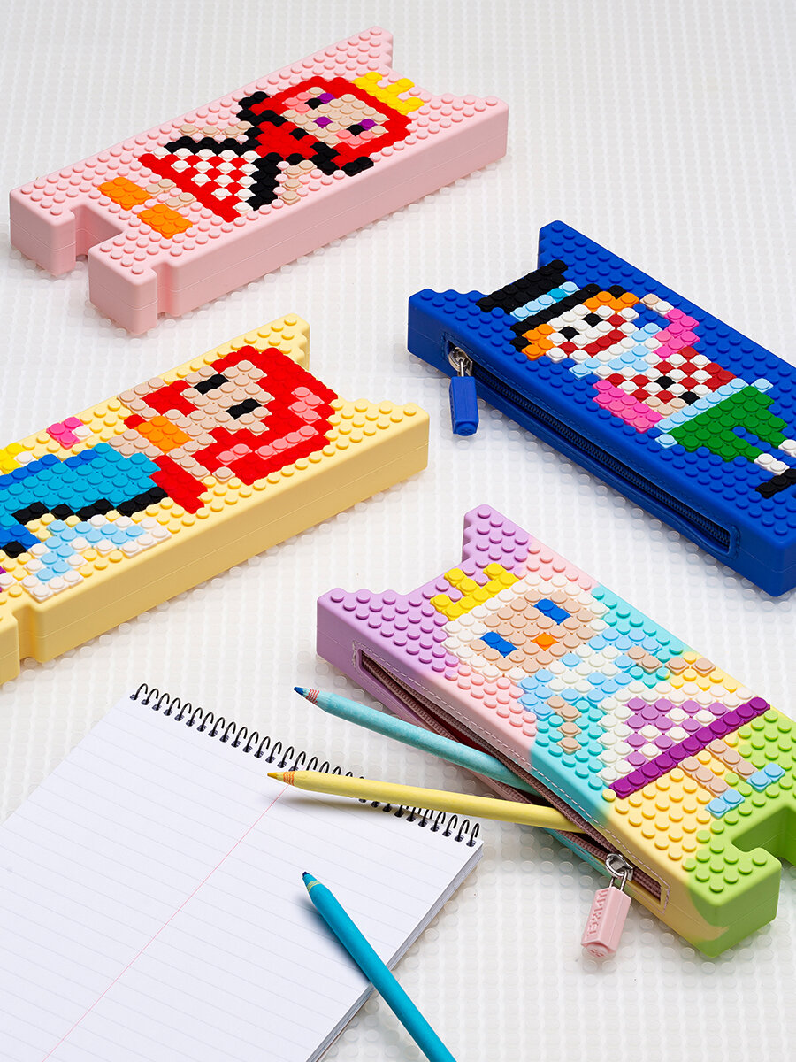 10 цен на Пенал школьный силиконовый с пикселями для рисунков радужный Upixel