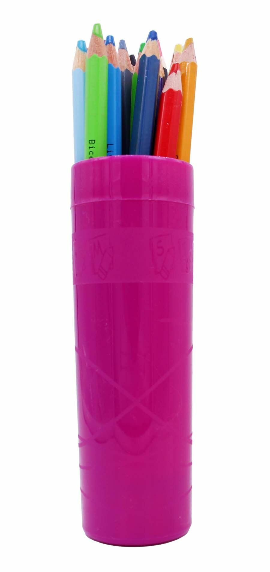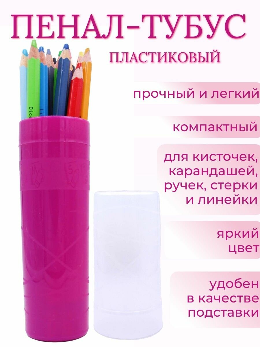 10 цен на Пенал тубус пластиковый прочный для школы темный розовый-прозрачный