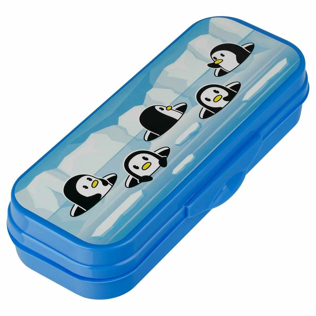 Пенал СТАММ "Пингвины ", без наполнения, светло-синий, 215x90x43мм информация: