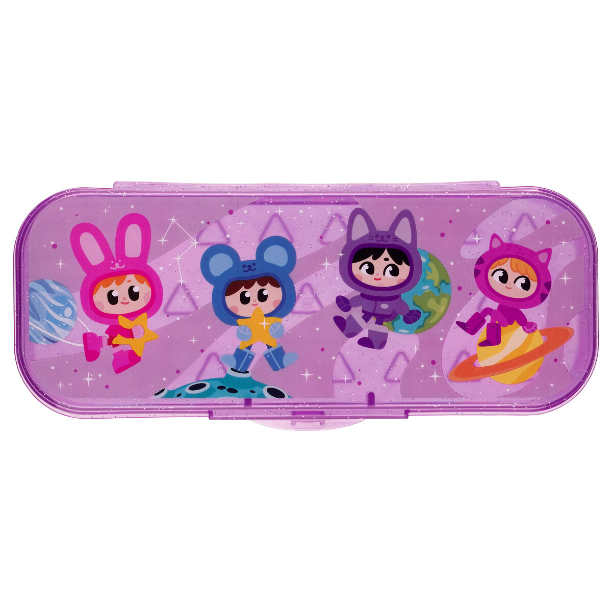 Отзывы на Комплект 21 шт, Пенал-футляр, 215*90*43 СТАММ "Звездочки", тонированный фиолетовый с блестками