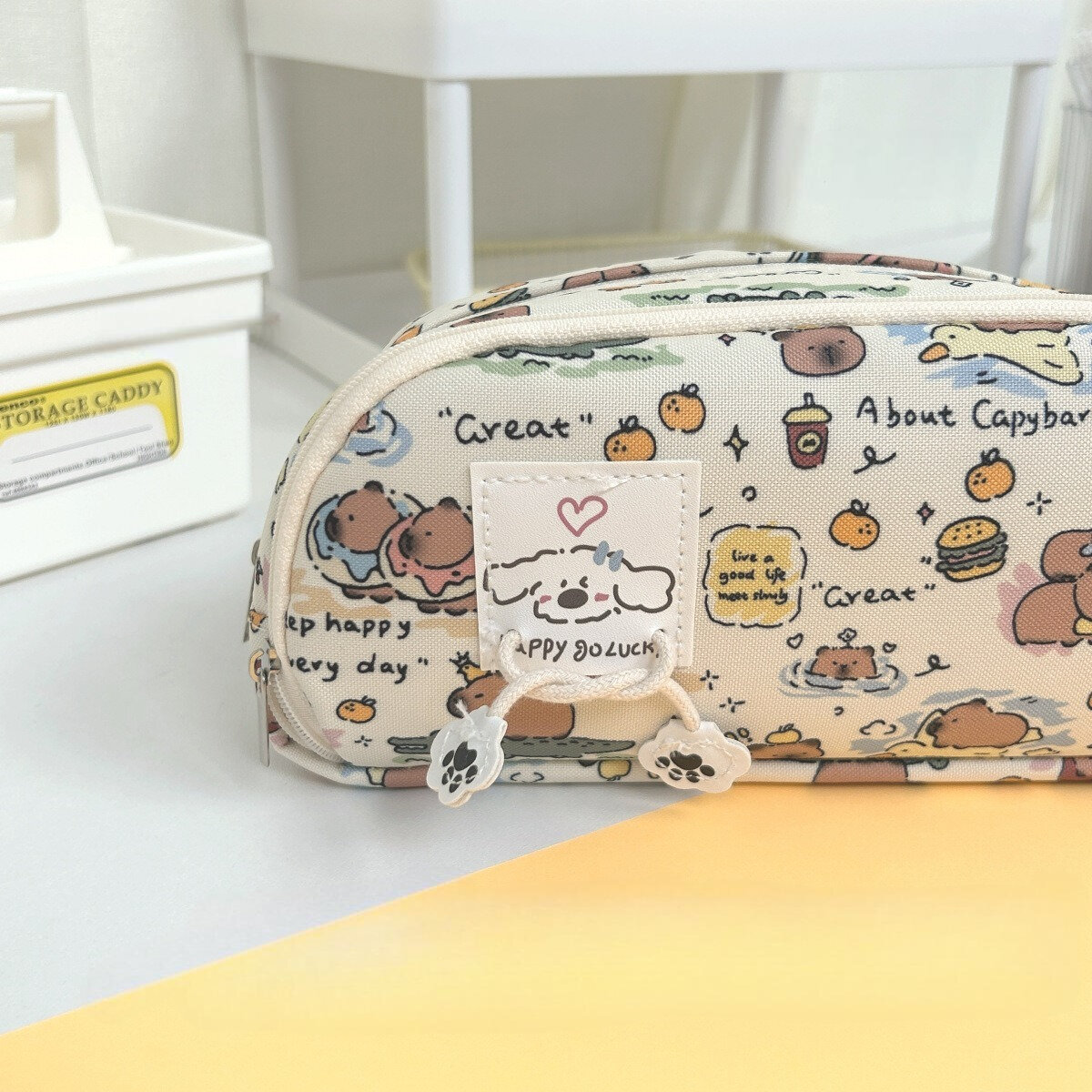 Отзывы на Пенал косметичка для школьников и студентов Капибара, 2 кармана, цвет бежевый
