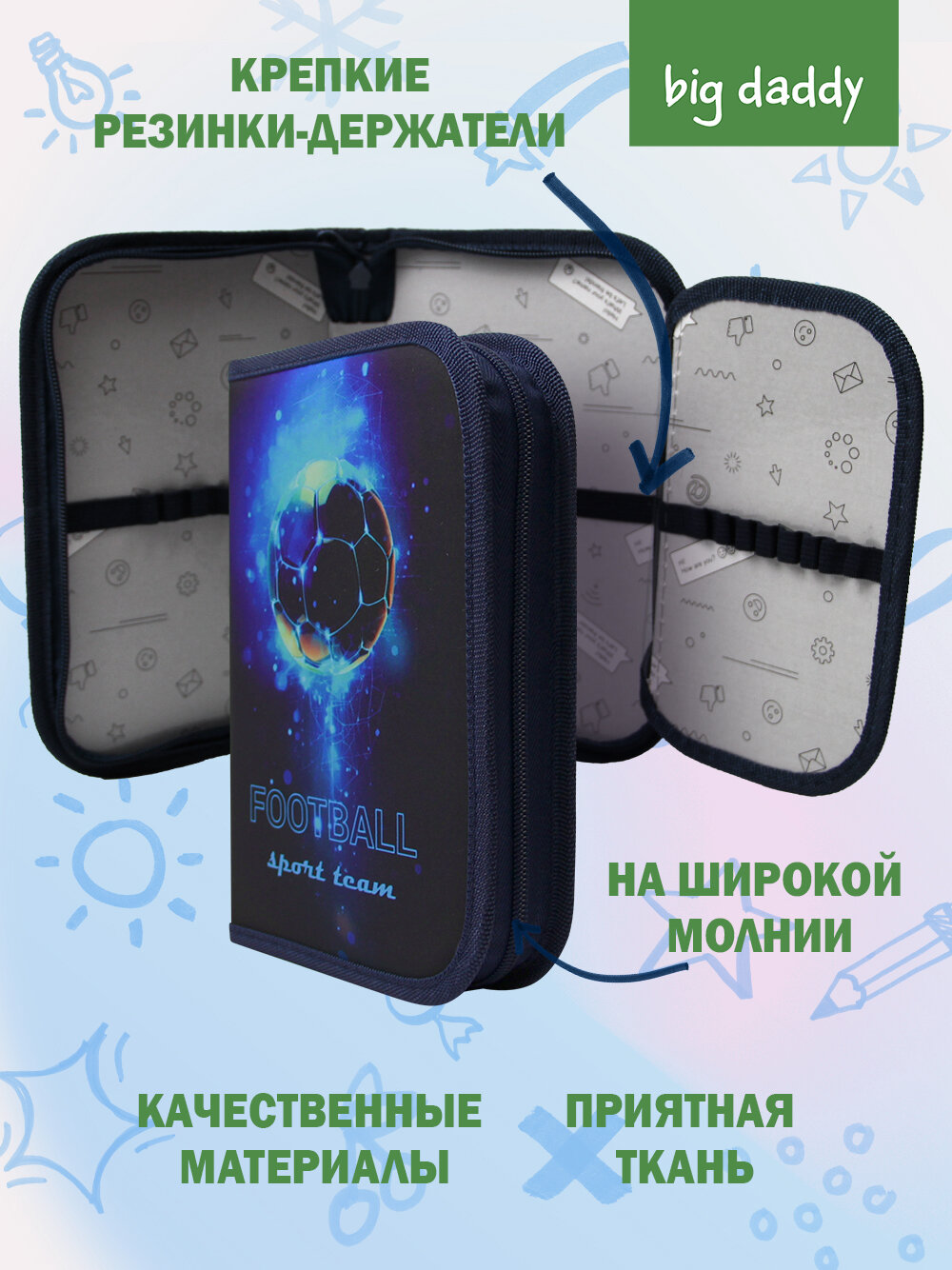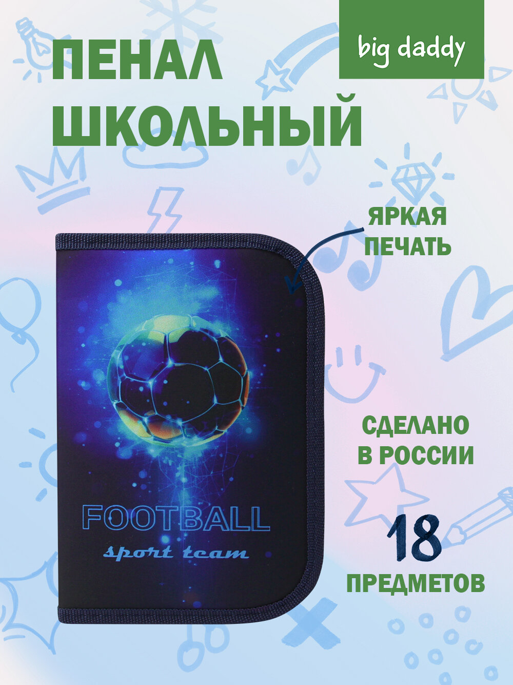 Отзывы на Пенал bigdaddy "Время футбола", школьный, 1 отделение, с откидной планкой