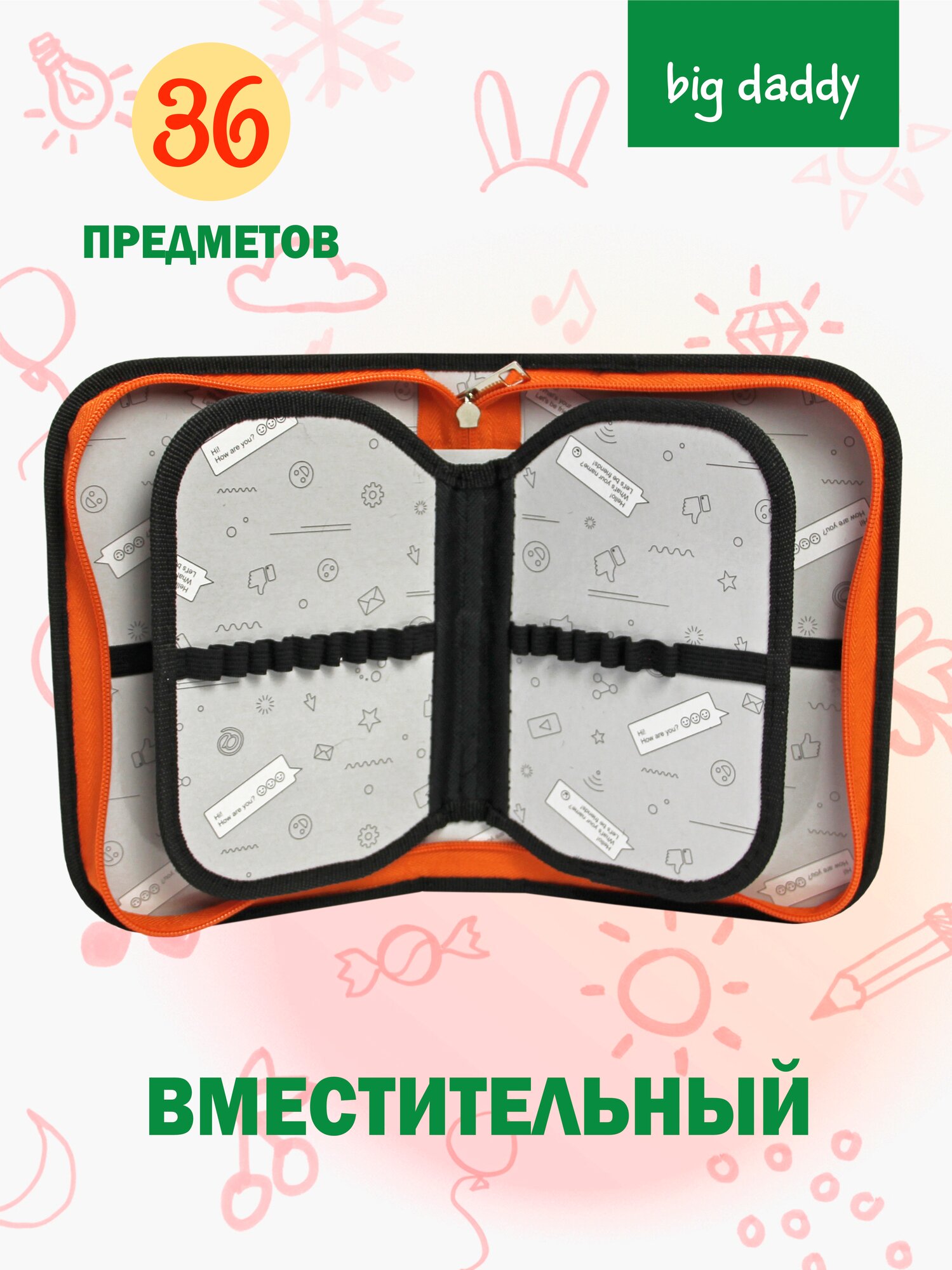 Пенал школьный BigDaddy, тканевый, три секции, два блока 14 см x 21 см x 4 см smart block "Милый цыплята" 549 ₽