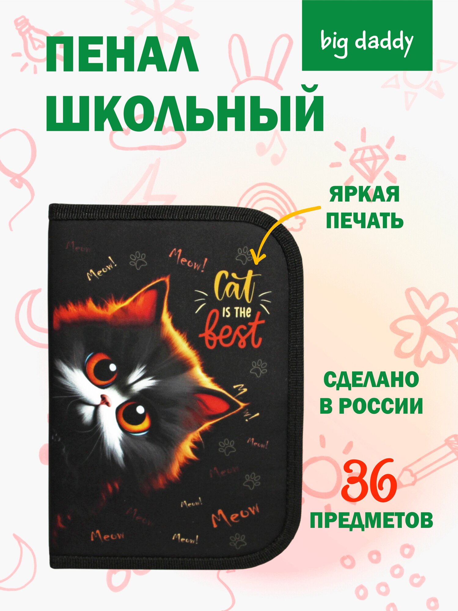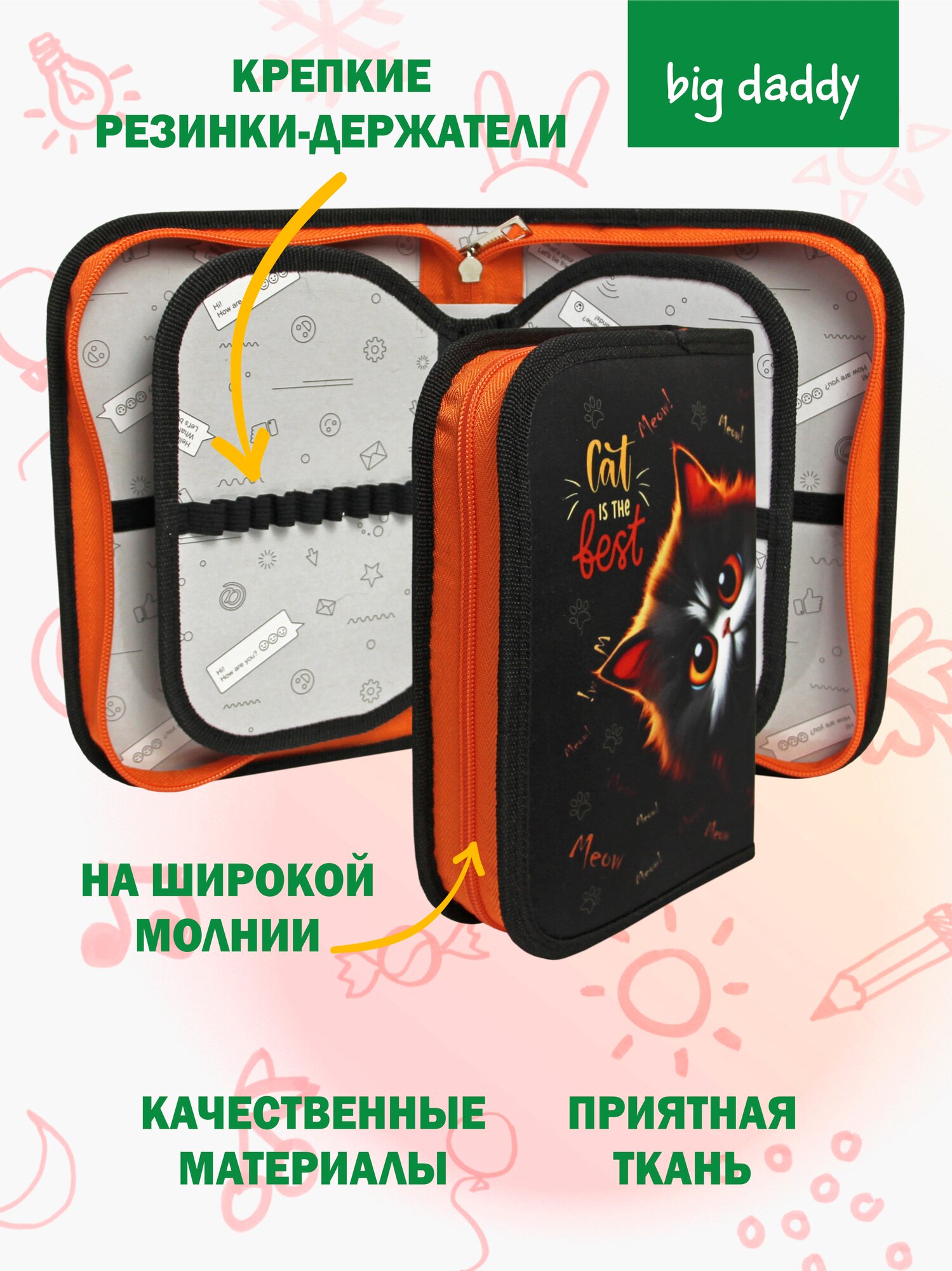 Отзывы на Пенал школьный BigDaddy, тканевый, три секции, два блока 14 см x 21 см x 4 см smart block "Лучший кот"