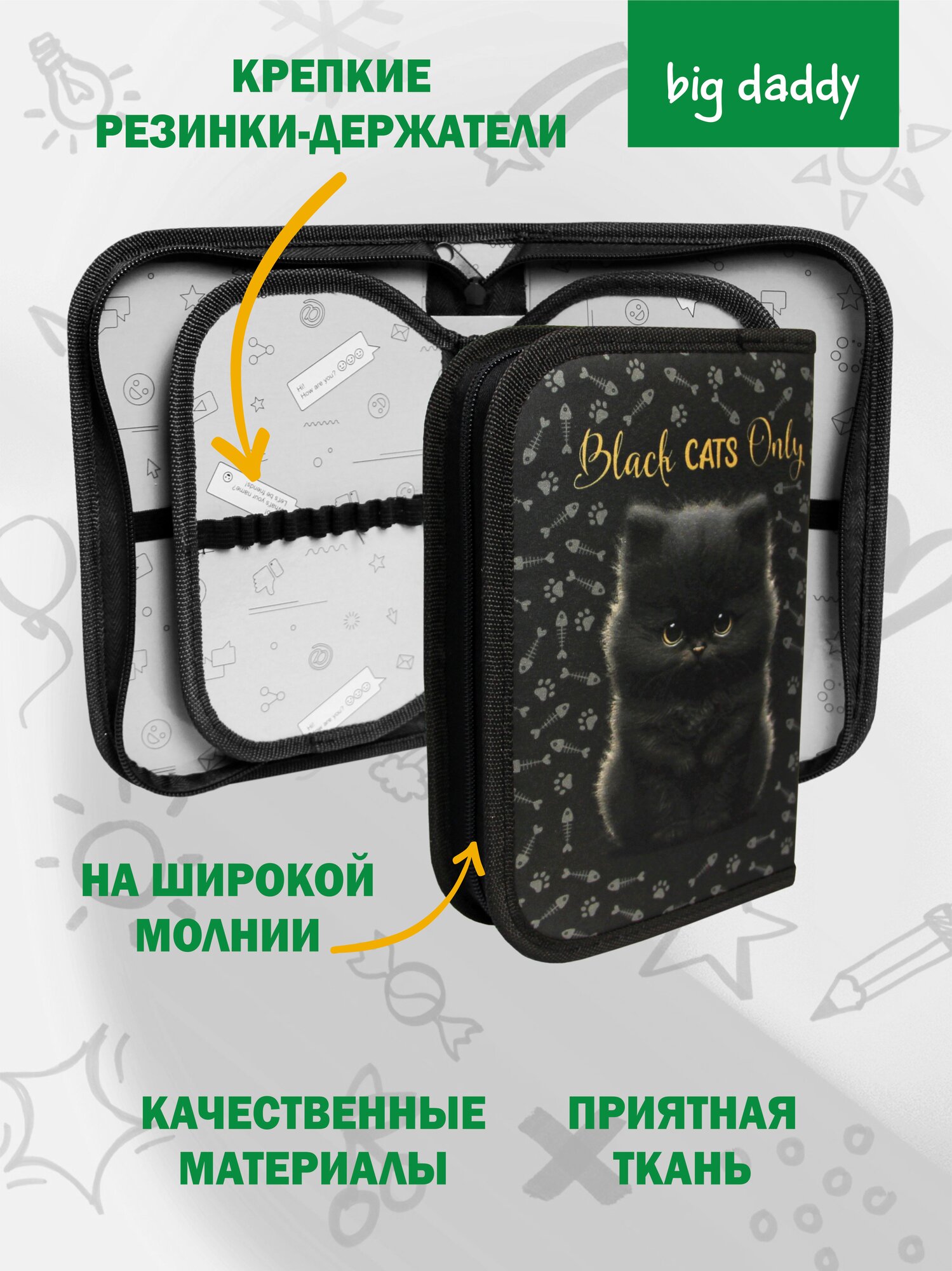 Пенал школьный BigDaddy, тканевый, три секции, два блока 14 см x 21 см x 4 см smart block "Лучший кот" 549 ₽