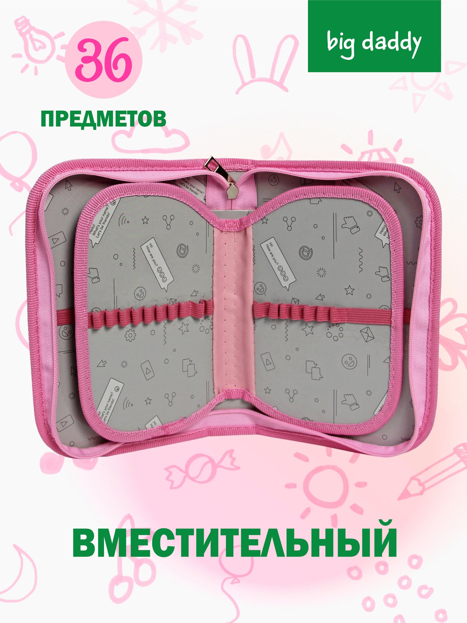 Пенал школьный BigDaddy, тканевый, три секции, два блока 14 см x 21 см x 4 см smart block "Милый цыплята" 549 ₽