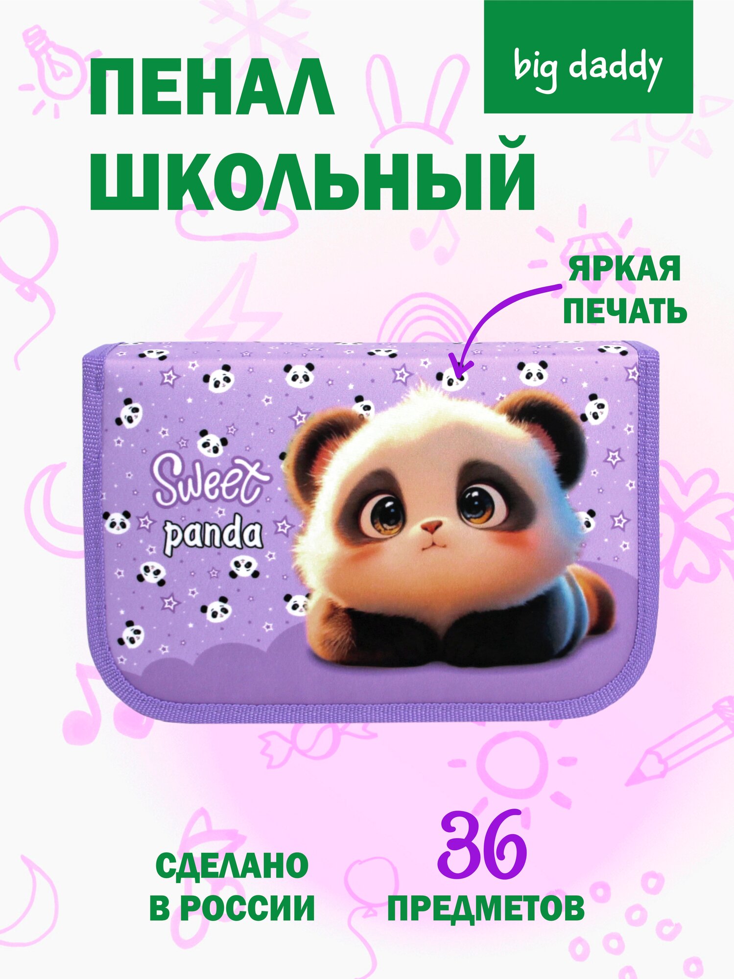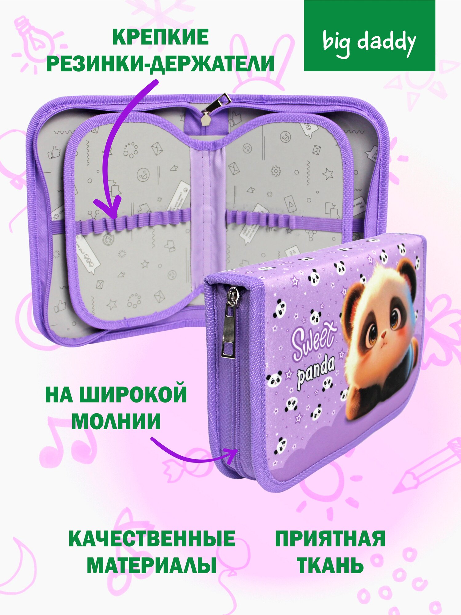 Отзывы на Пенал школьный BigDaddy, тканевый, три секции, два блока 14 см x 21 см x 4 см smart block "Панда"