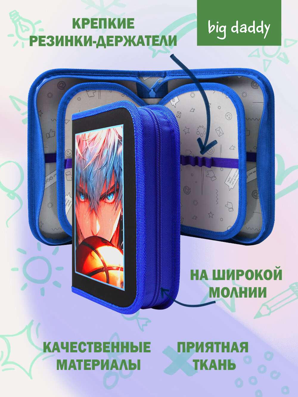 10 цен на Пенал школьный BigDaddy, тканевый, три секции, два блока 14 см x 21 см x 4 см smart block "Аниме-баскетбол"