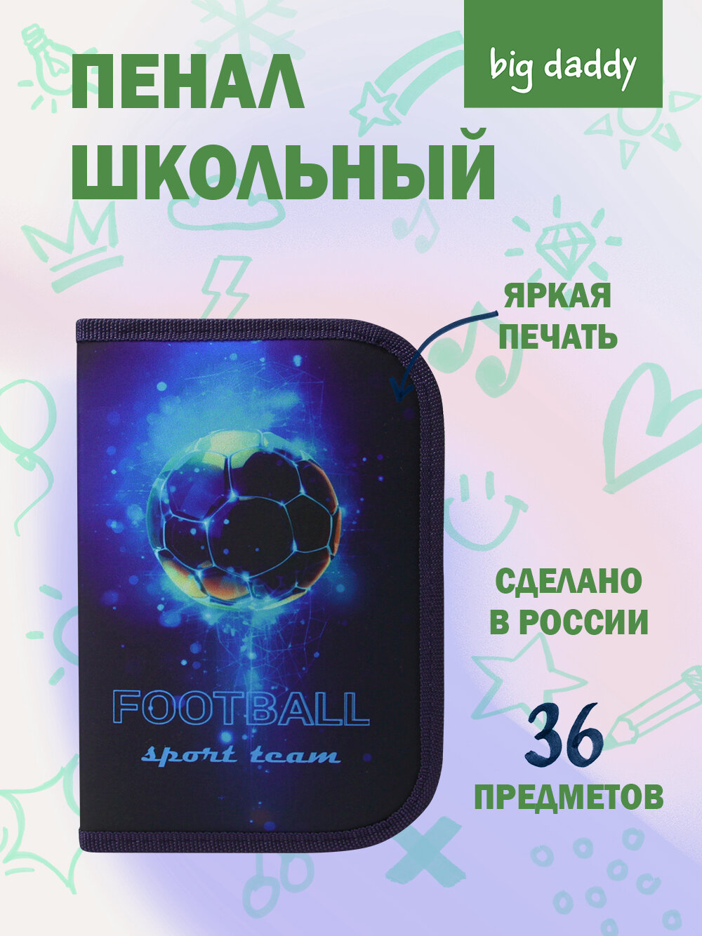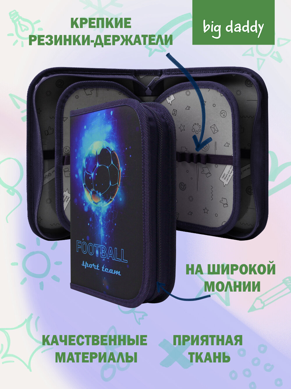 Пенал школьный BigDaddy, тканевый, три секции, два блока 14 см x 21 см x 4 см smart block "Время футбола" информация: