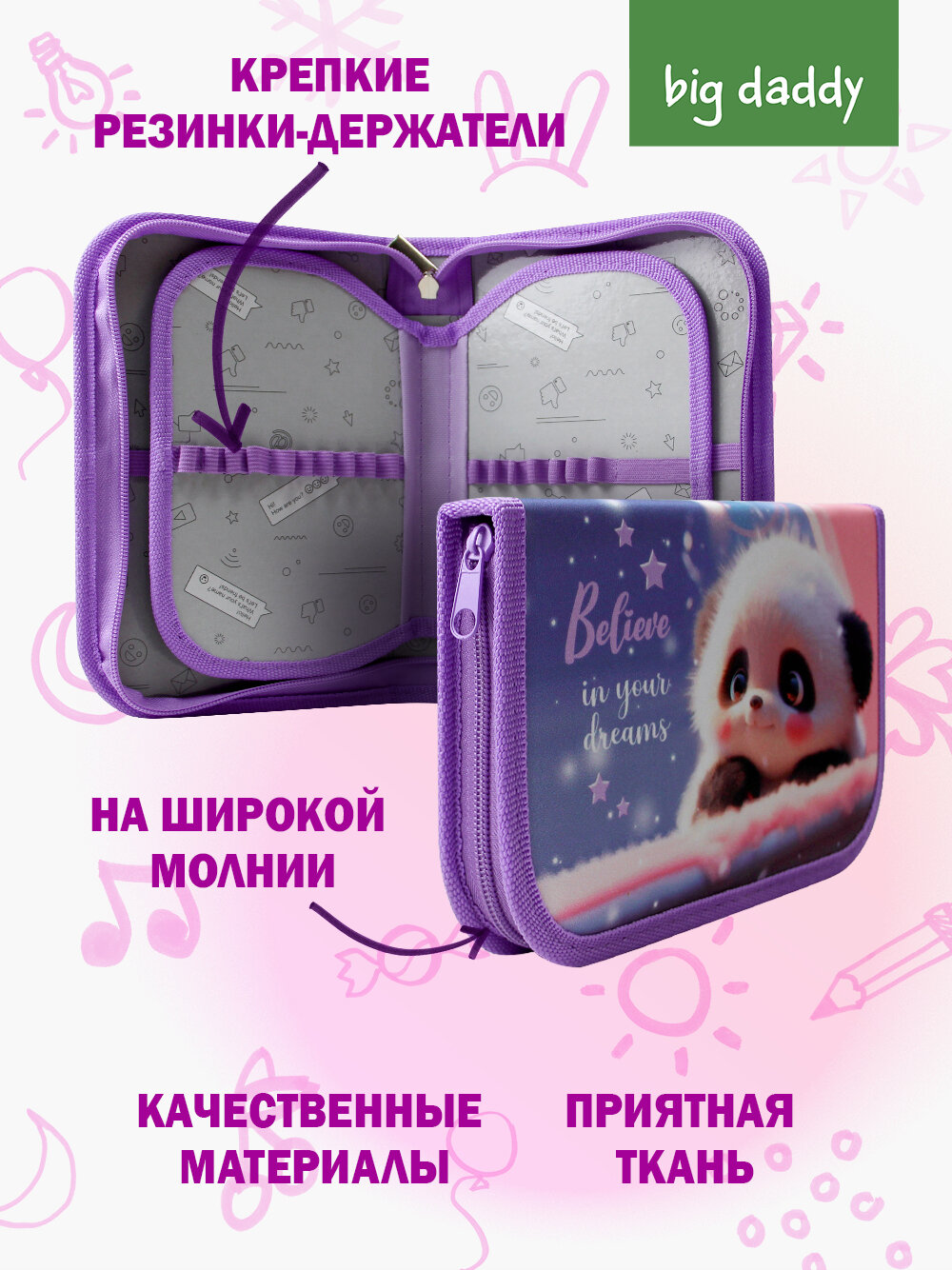 Отзывы на Пенал школьный BigDaddy, тканевый, три секции, два блока 14 см x 21 см x 4 см smart block "Милая панда"