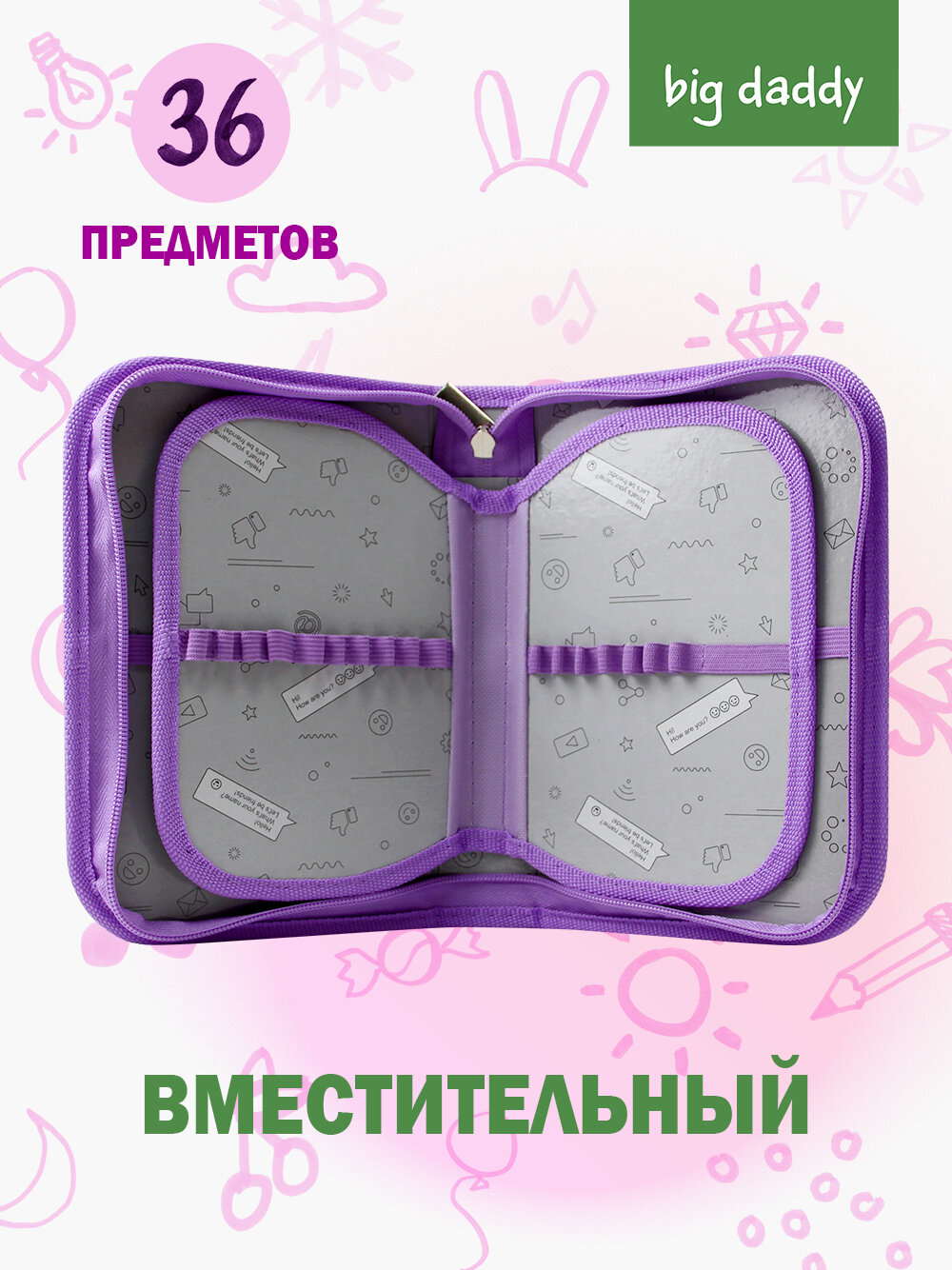 Пенал школьный BigDaddy, тканевый, три секции, два блока 14 см x 21 см x 4 см smart block "Пушистик" 549 ₽
