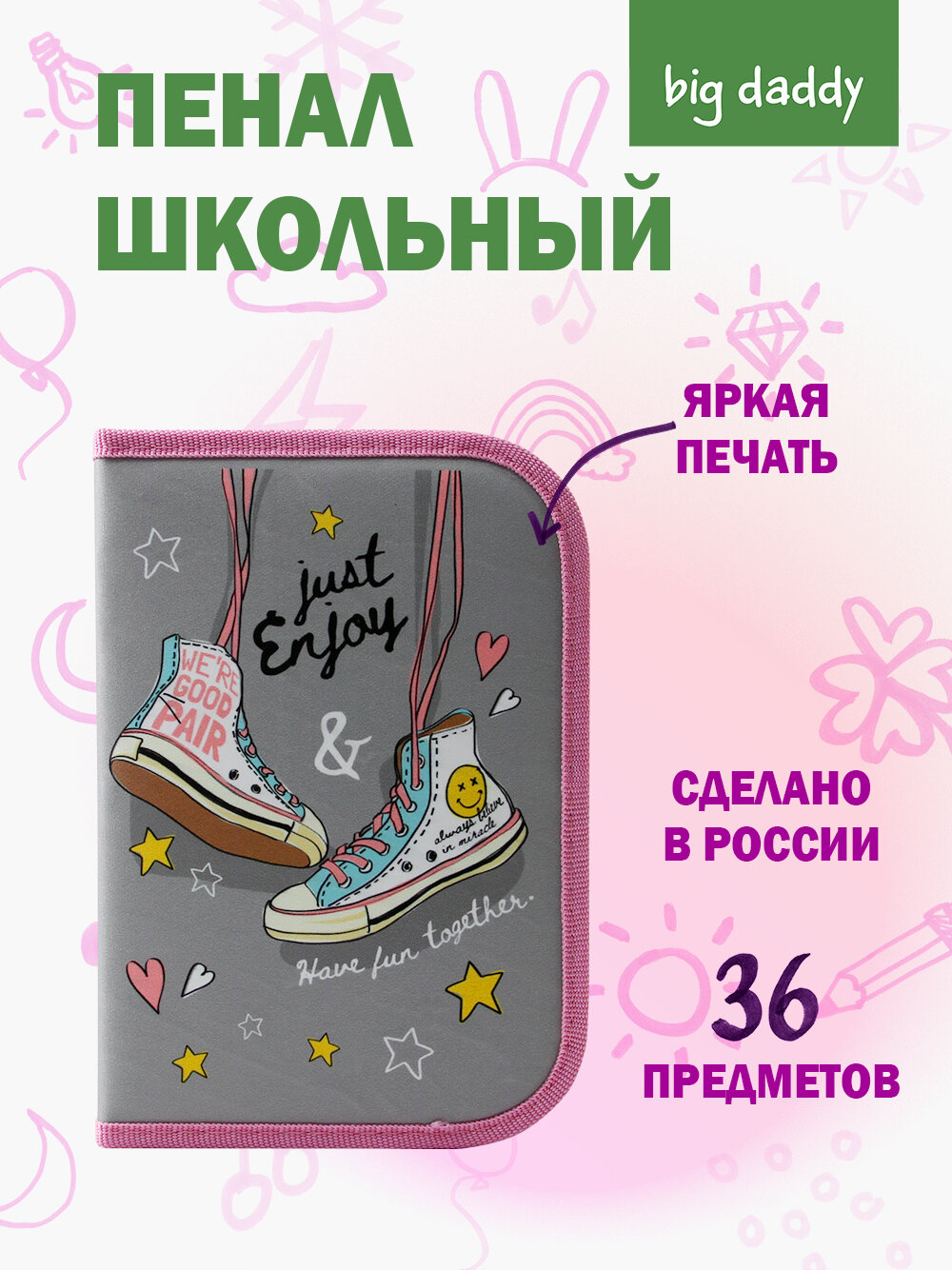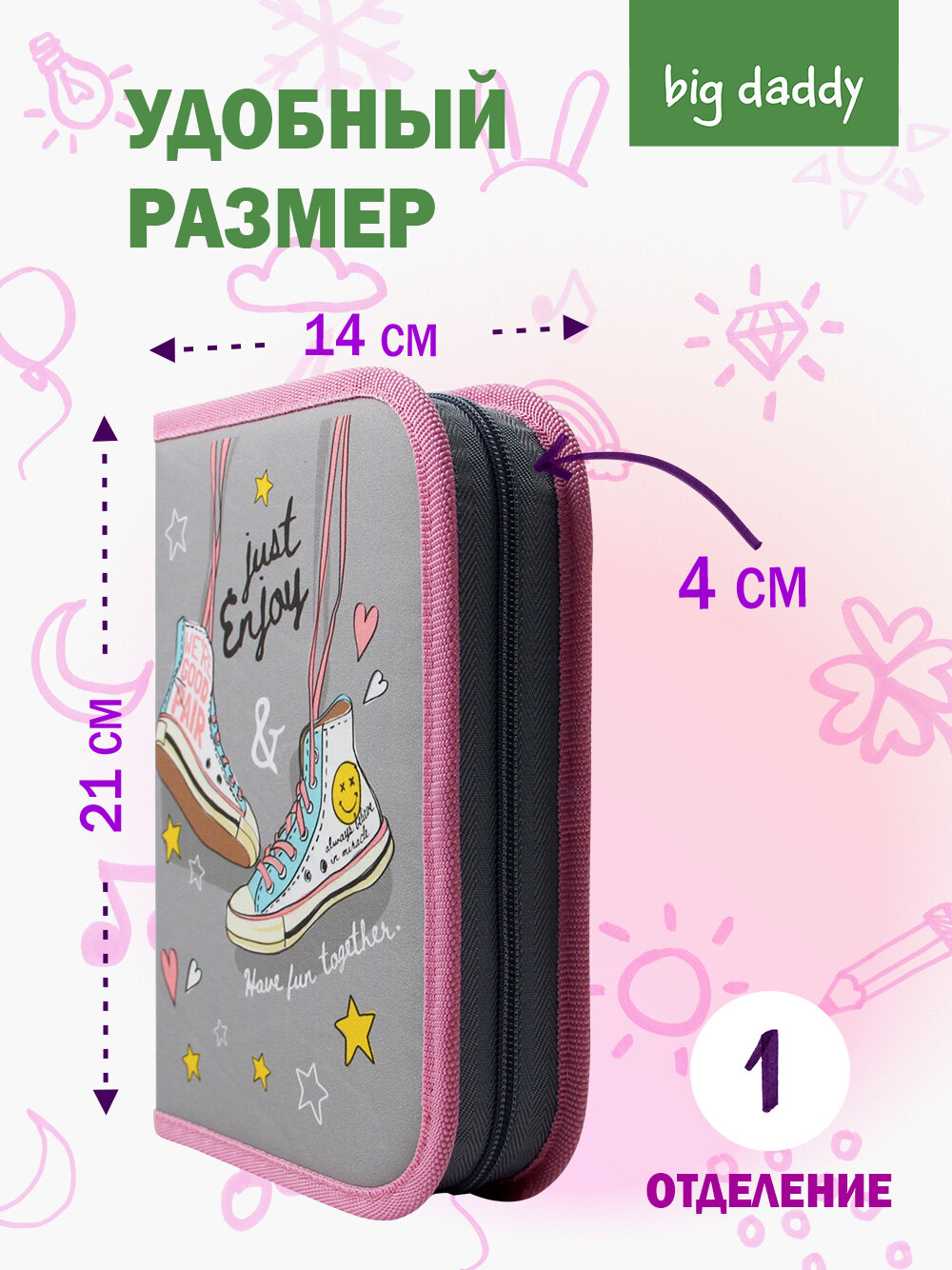 Пенал школьный BigDaddy, тканевый, три секции, два блока 14 см x 21 см x 4 см smart block "Девочка-любовь" 549 ₽