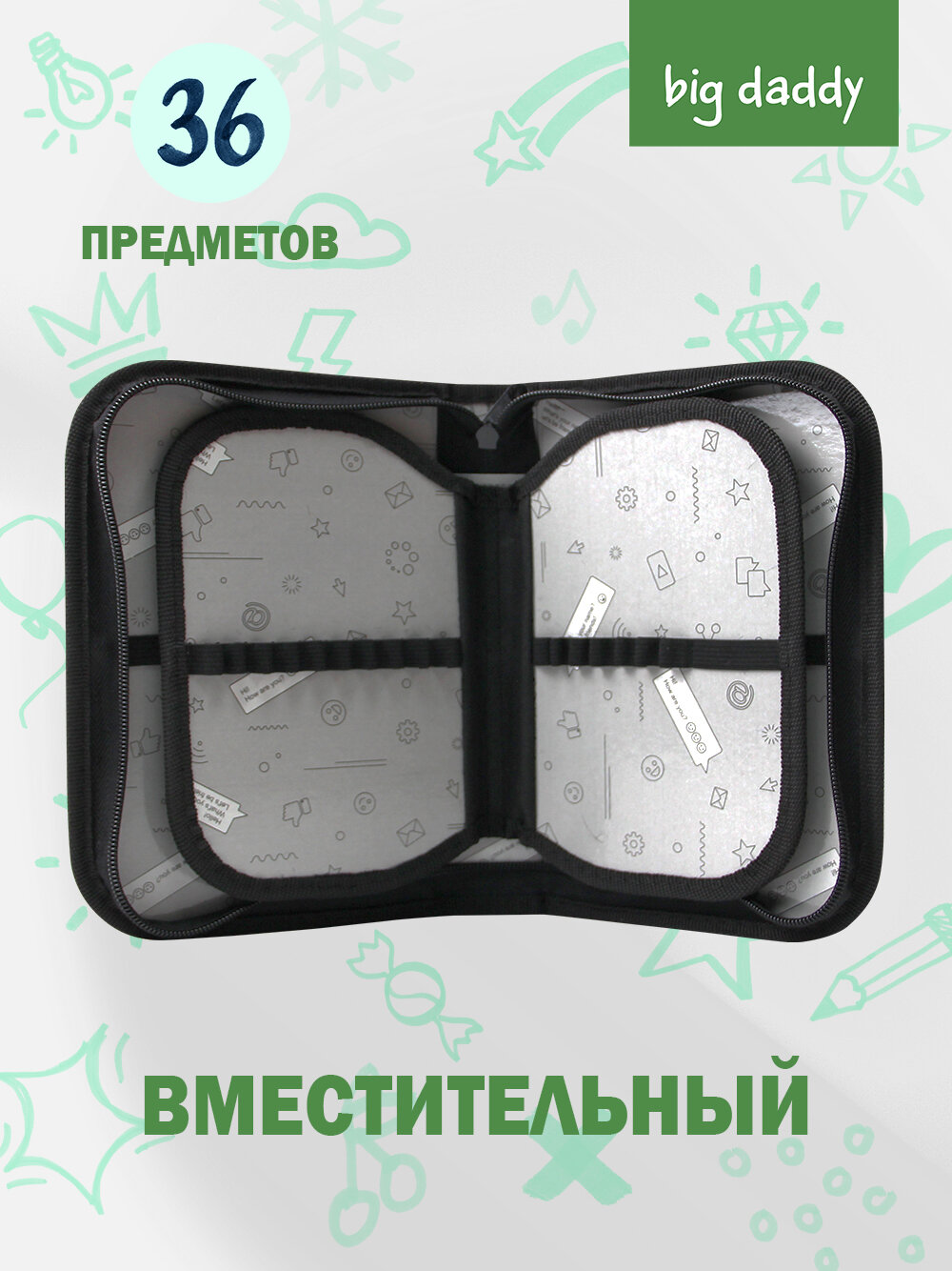 Пенал школьный BigDaddy, тканевый, три секции, два блока 14 см x 21 см x 4 см smart block "Черныш" 549 ₽
