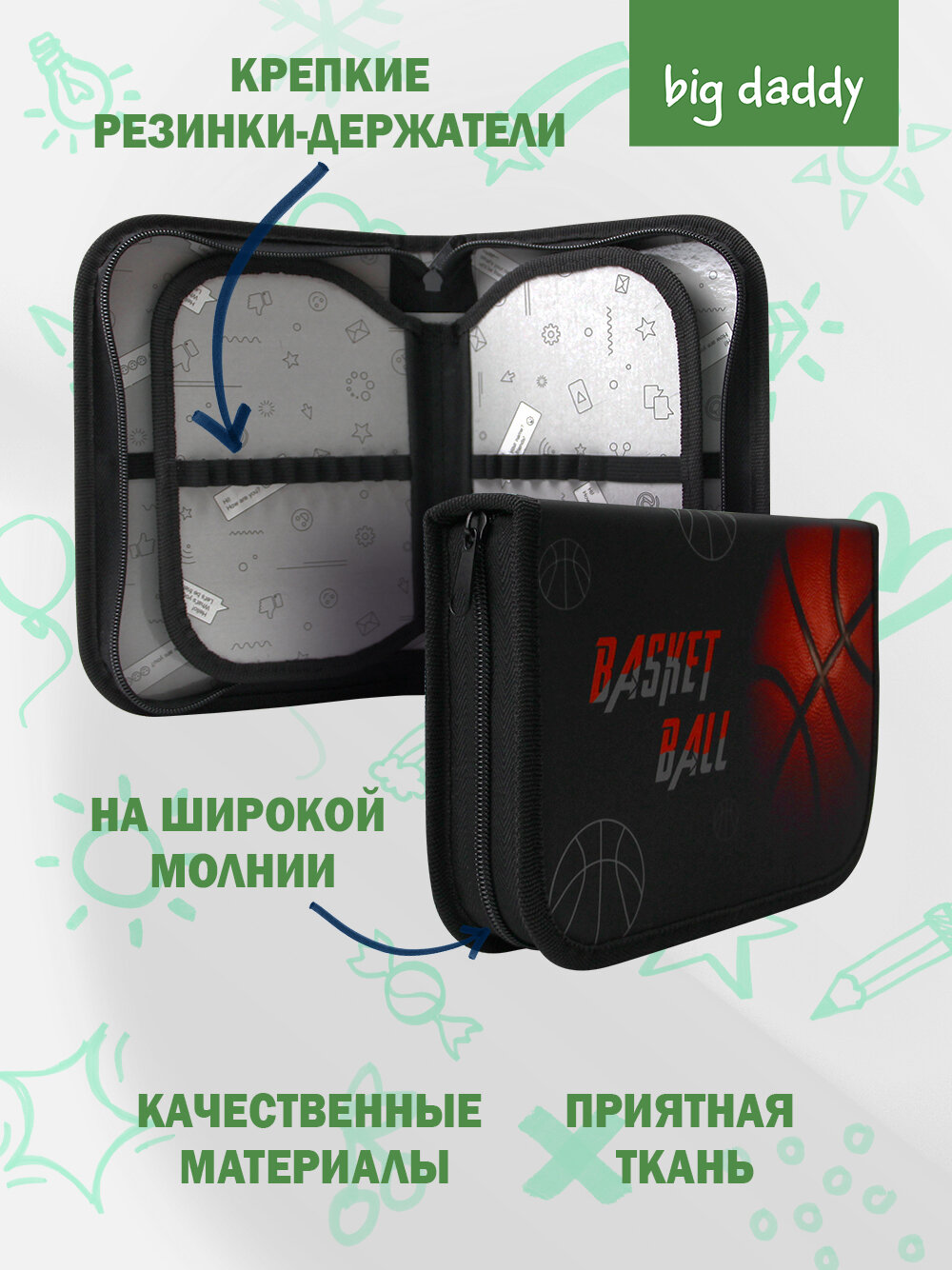Пенал школьный BigDaddy, тканевый, три секции, два блока 14 см x 21 см x 4 см smart block "Баскетбольный мяч" информация: