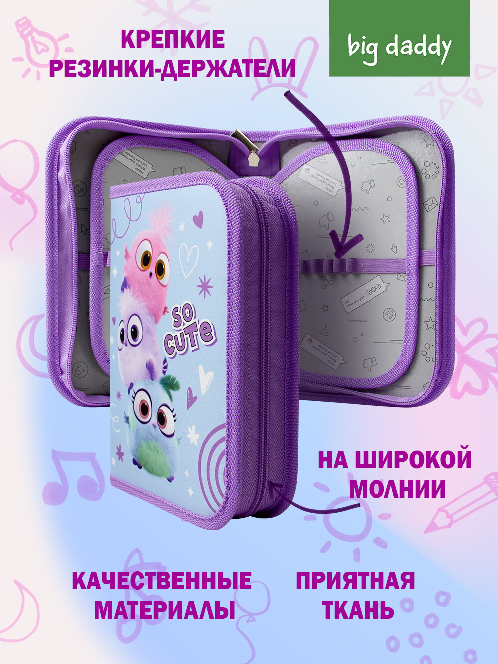 Отзывы на Пенал школьный BigDaddy, тканевый, три секции, два блока 14 см x 21 см x 4 см smart block "Милый цыплята"