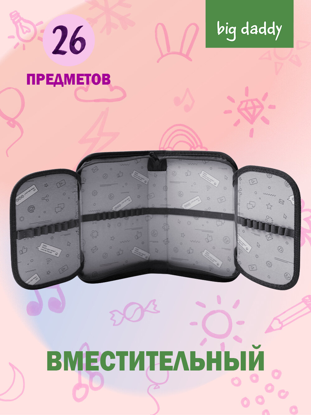 Пенал школьный bigdaddy 1 отделение 2 откидные секции 130*210*35мм "Ты - лучшая" информация:
