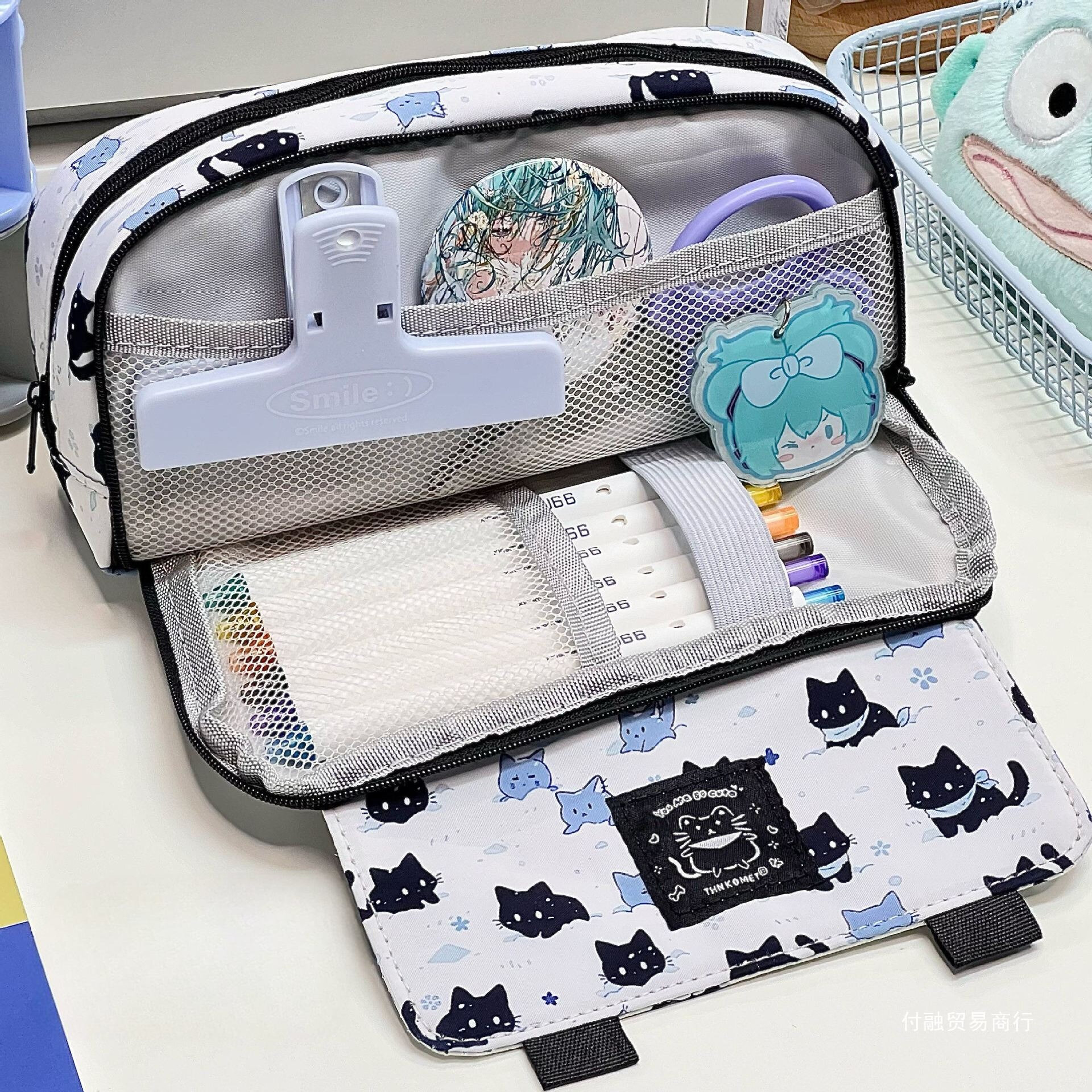 Пенал косметичка для школьников и студентов Аниме, 3 кармана, цвет белый 483 ₽