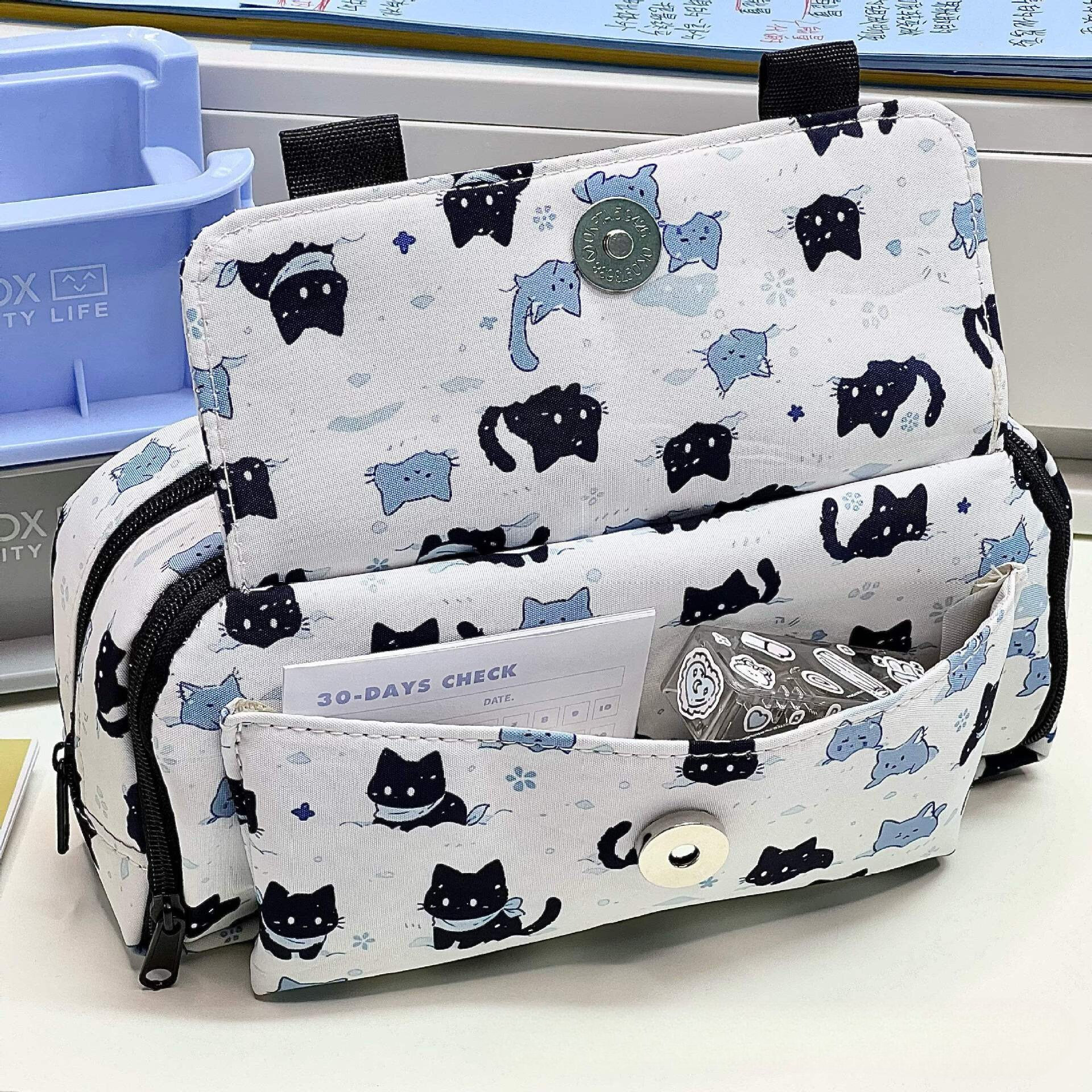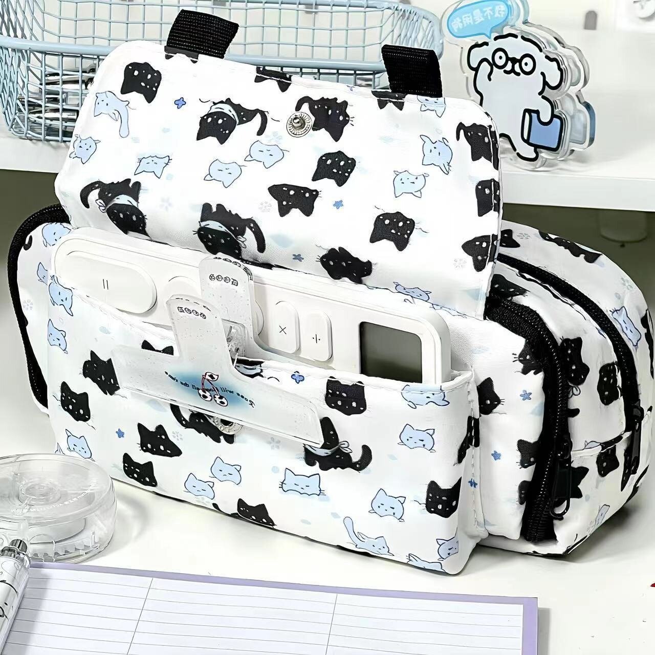 10 цен на Пенал косметичка для школьников и студентов Снежный котенок, 3 кармана, цвет белый