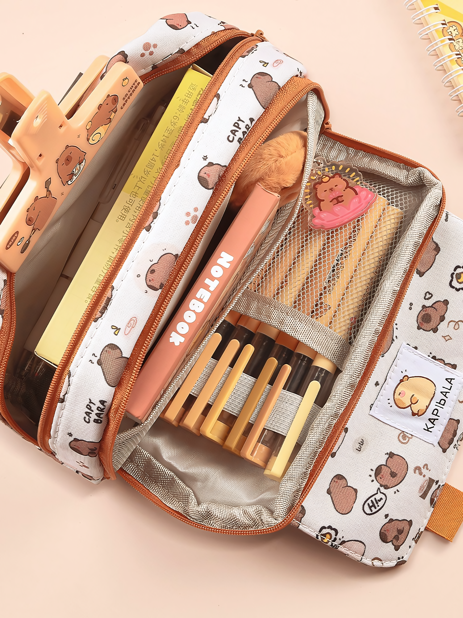 Пенал косметичка для школьников и студентов Капибара, 3 кармана, цвет бежевый 483 ₽