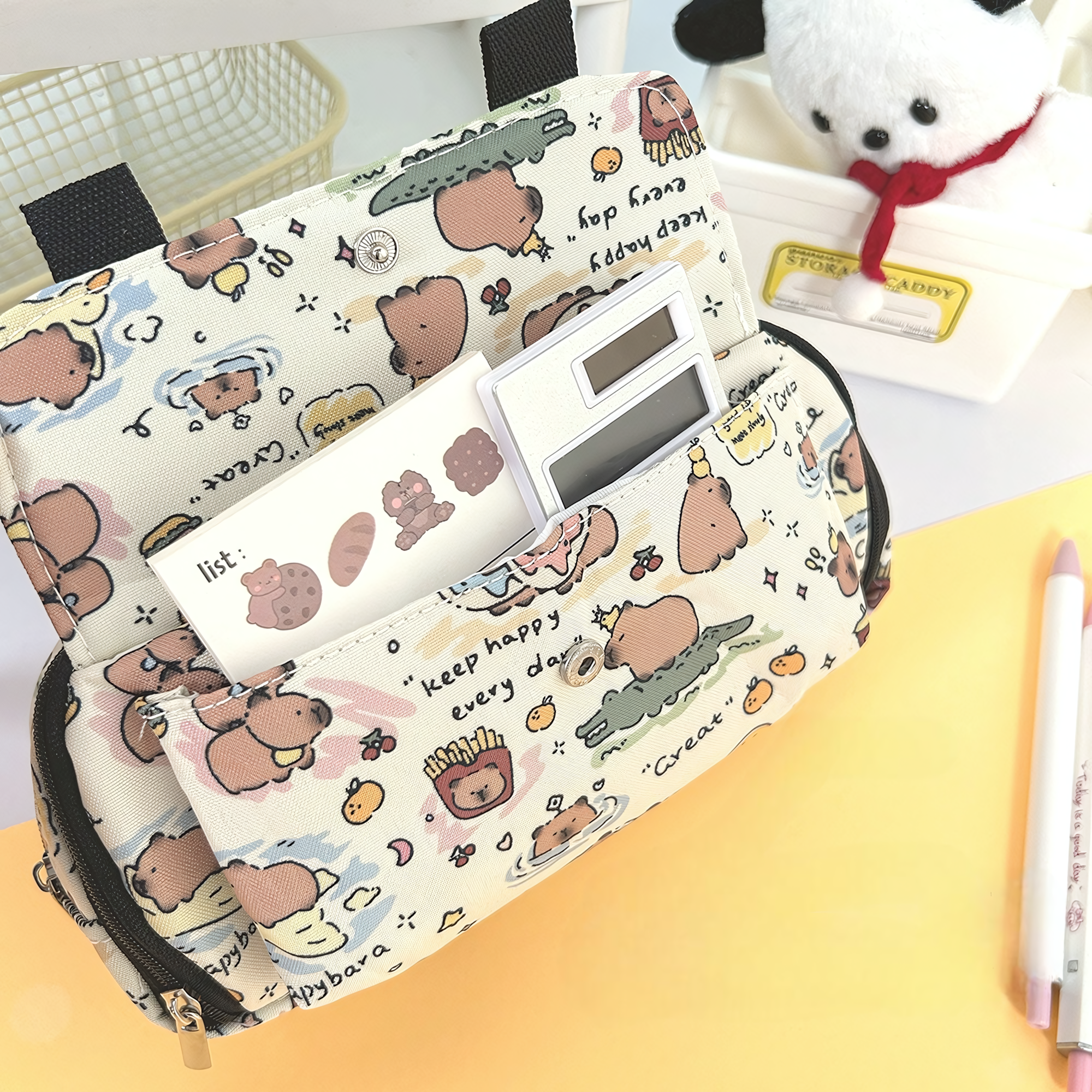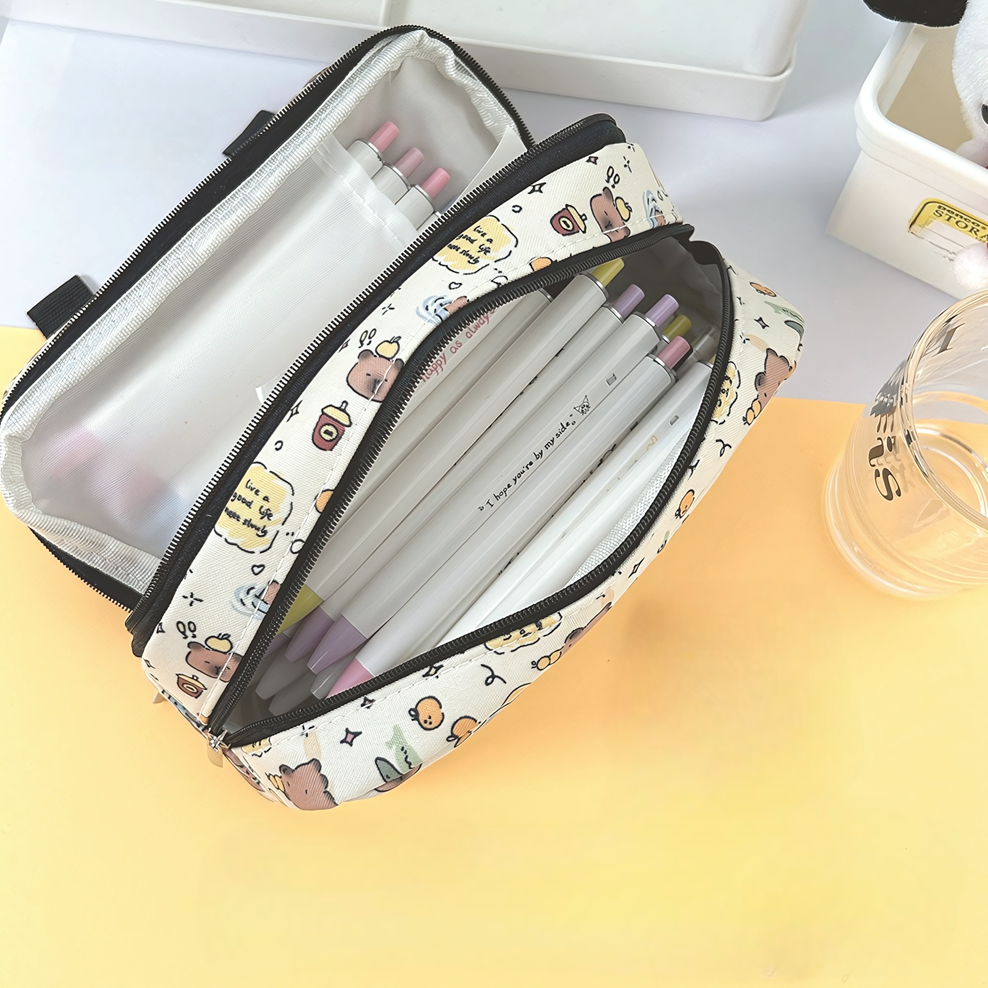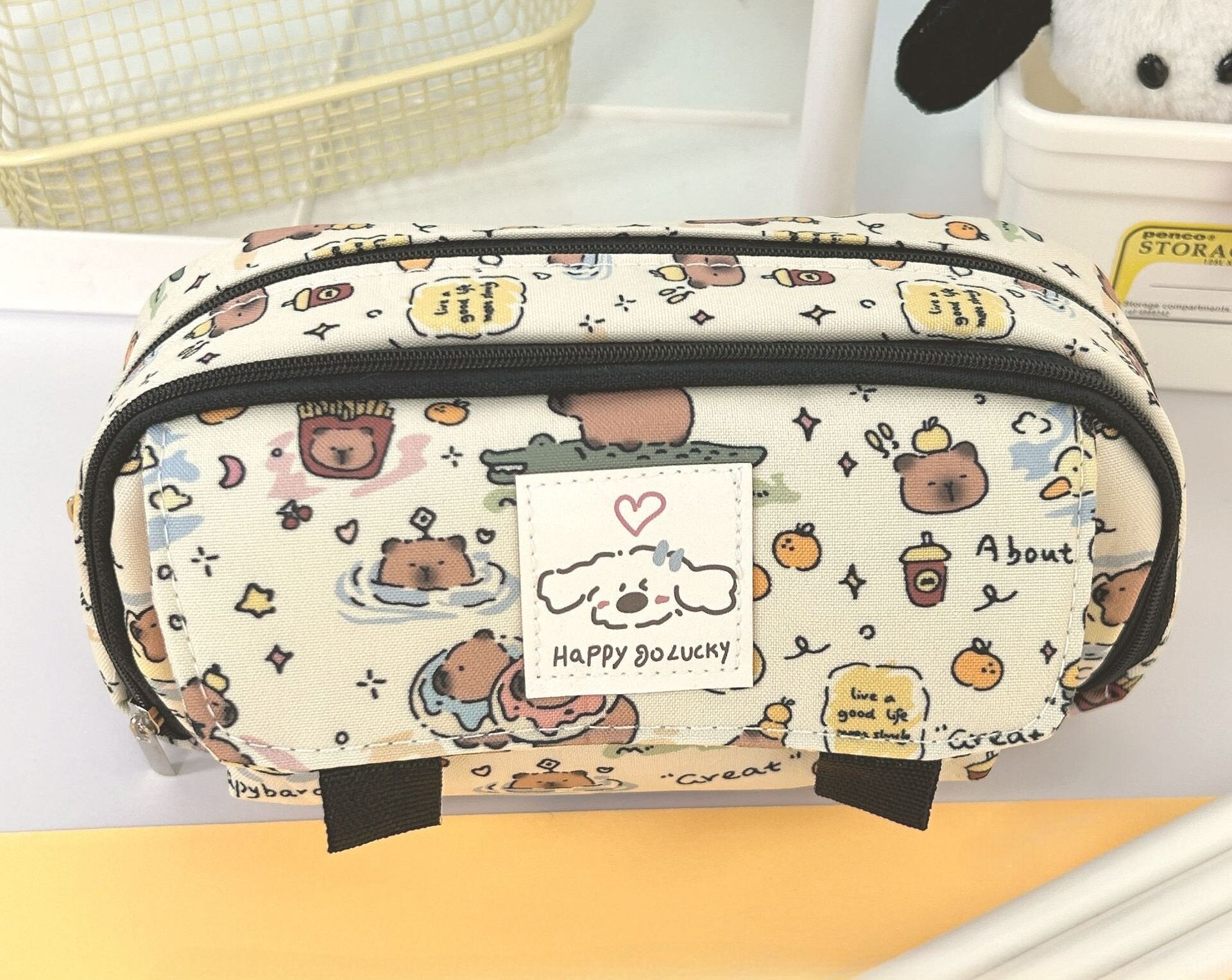 Отзывы на Пенал косметичка для школьников и студентов Капибара, 3 кармана, цвет бежевый