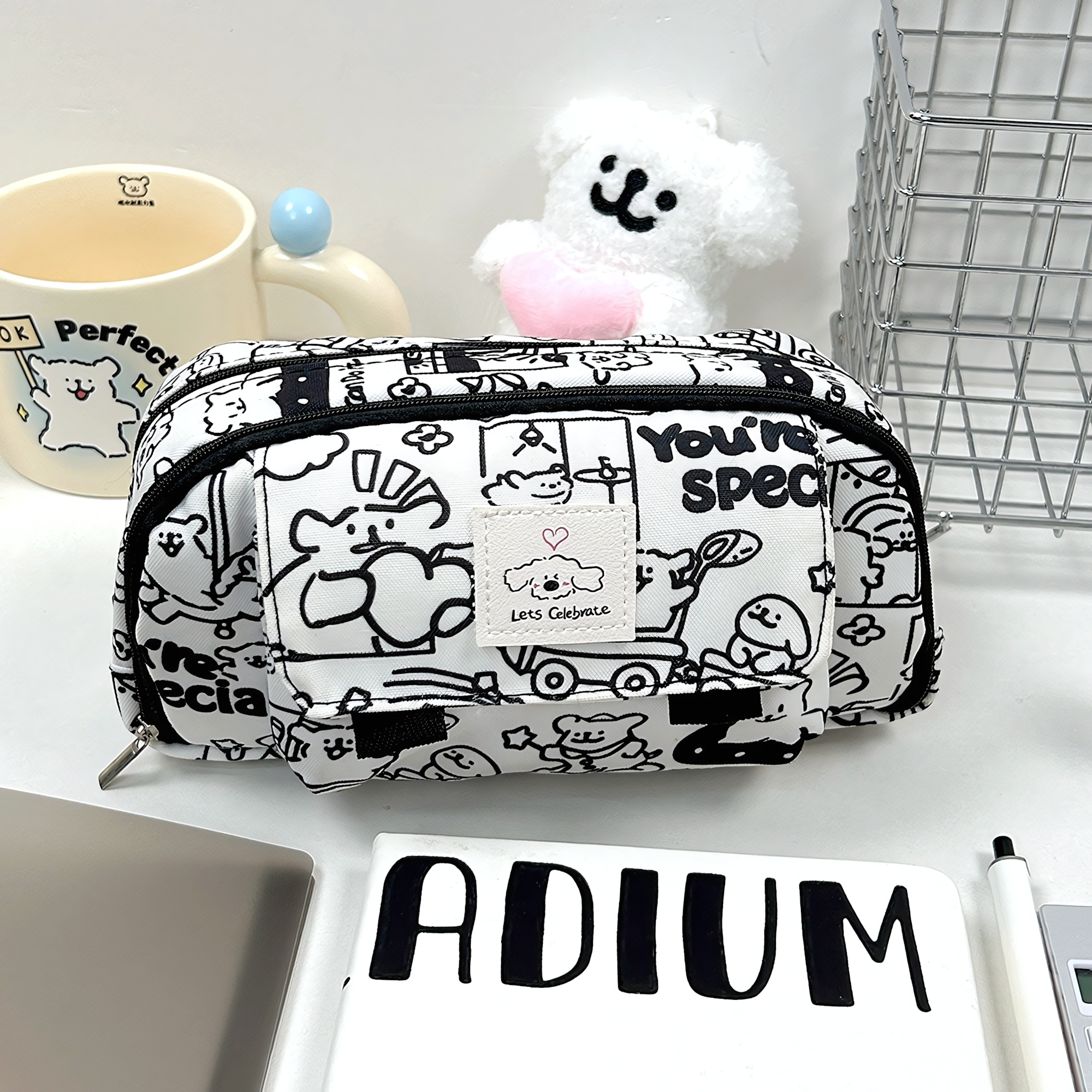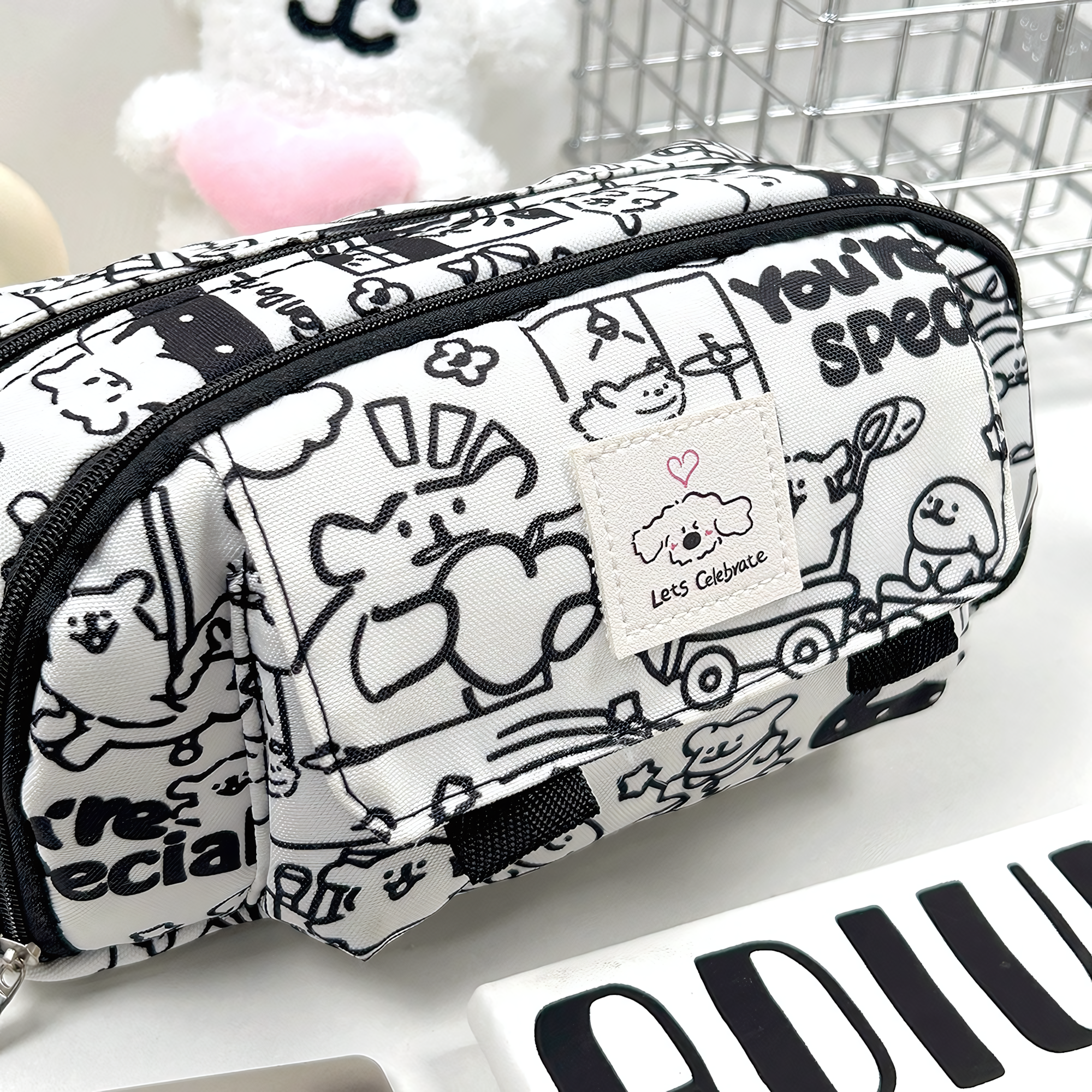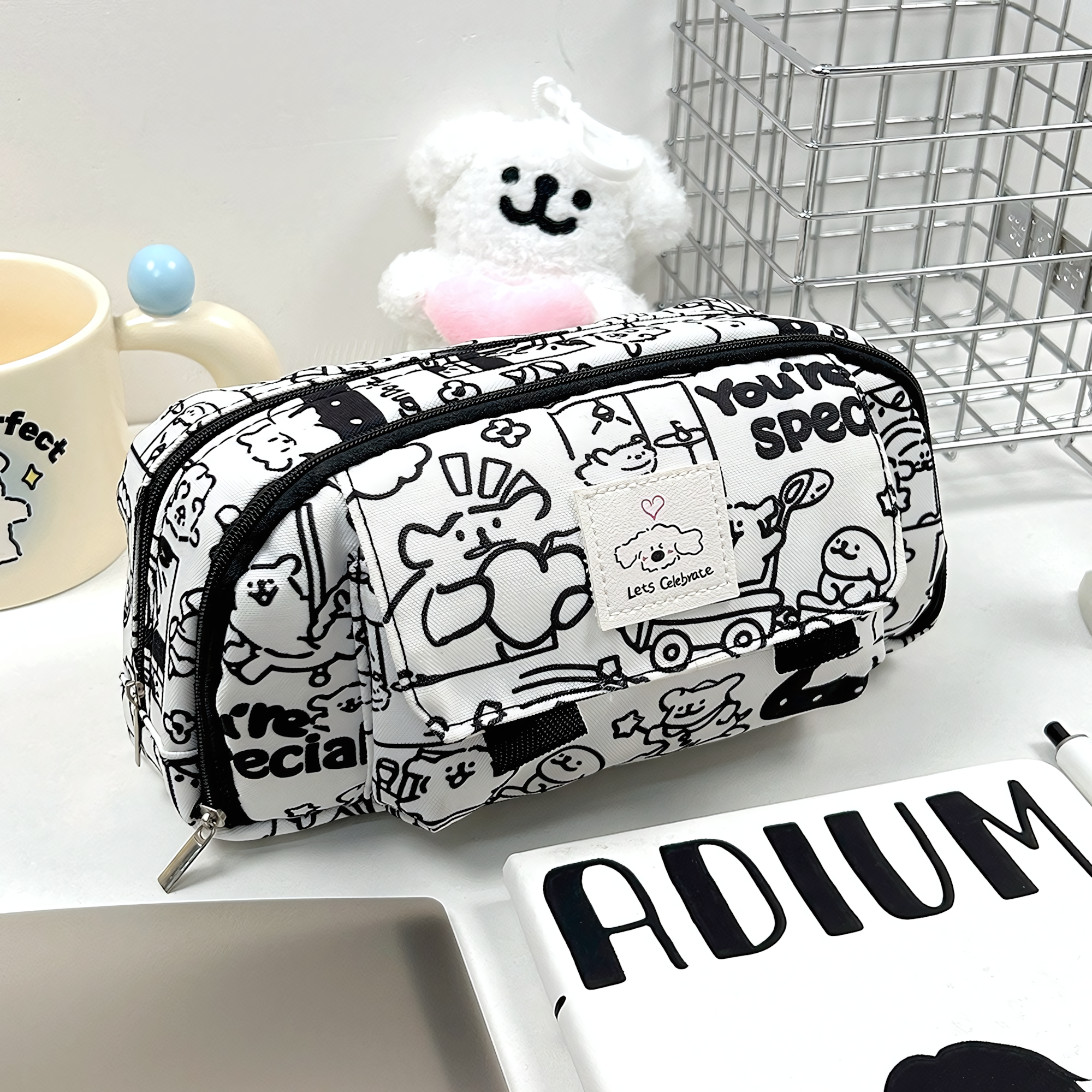 Отзывы на Пенал косметичка для школьников и студентов Щенки, 3 кармана, цвет белый