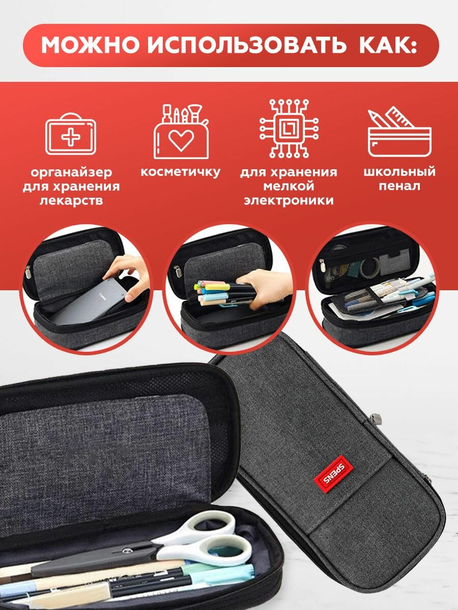 Отзывы на Пенал для девочек и мальчиков школьный большой с молнией, органайзер с отделениями в дорогу, серый