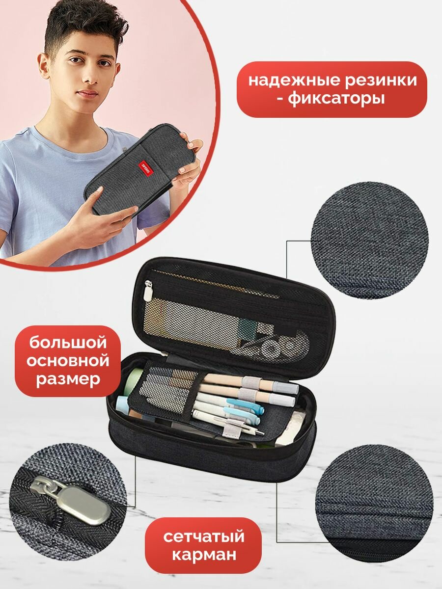 10 цен на Пенал для девочек и мальчиков школьный большой с молнией, органайзер с отделениями в дорогу, серый