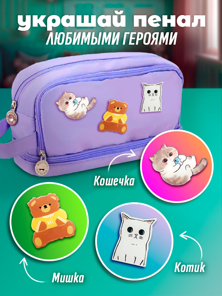 Отзывы на Пенал школьный MALBRETTA для девочки, большой и вместительный, 3 отделения, на молнии, 3 значка в комплекте, сиреневый