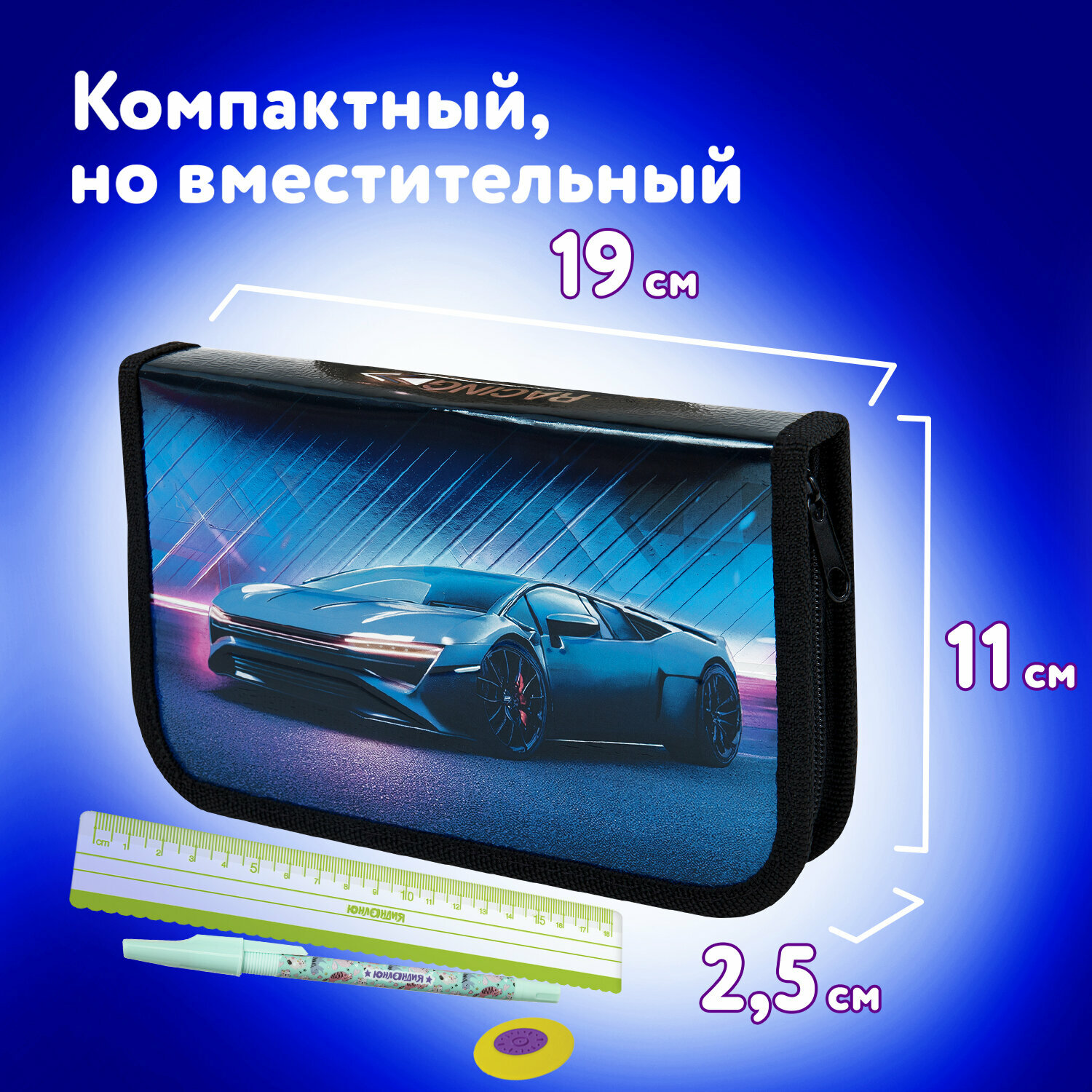 Пенал школьный для мальчиков для карандашей и ручек с 1 отделом, откидной планкой и карманом, канцелярия для школы, EVA, 22х10х5 см, Юнландия, 273187