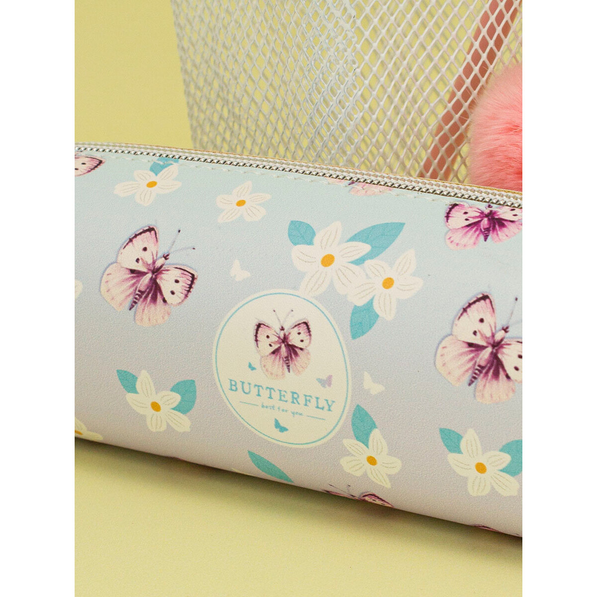 Пенал - косметичка МихиМихи на молнии с подвесом принт Бабочки сиренево-голубой информация:
