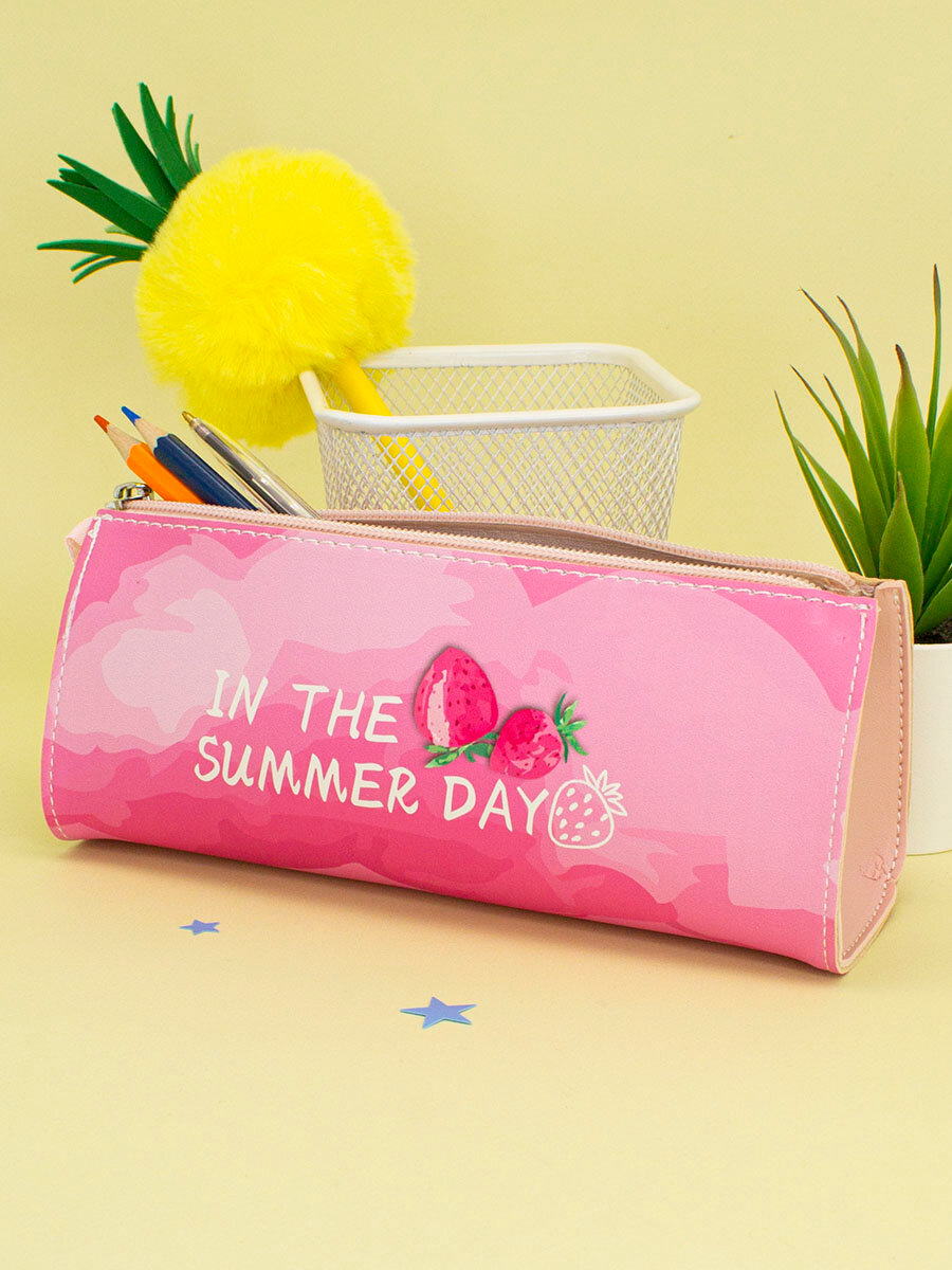 Пенал - косметичка МихиМихи на молнии милый принт Клубничка ярко-розовый для девочек 259 ₽