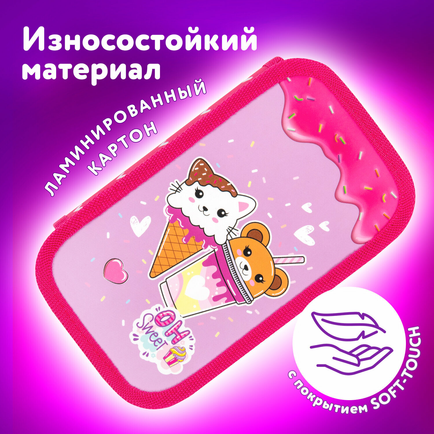 Пенал Юнландия, 2 отделения, картон с эффектом soft-touch, 19х11 см, Candy friends, 272263 информация: