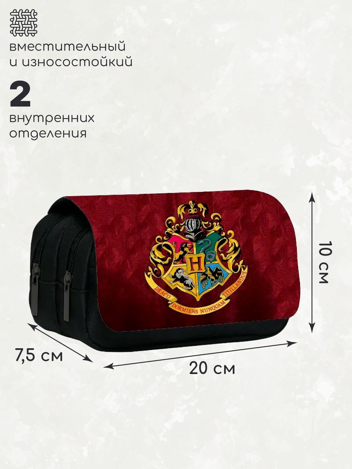 Школьный пенал с цветным гербом Хогвартс бордо / Гарри Поттер информация: