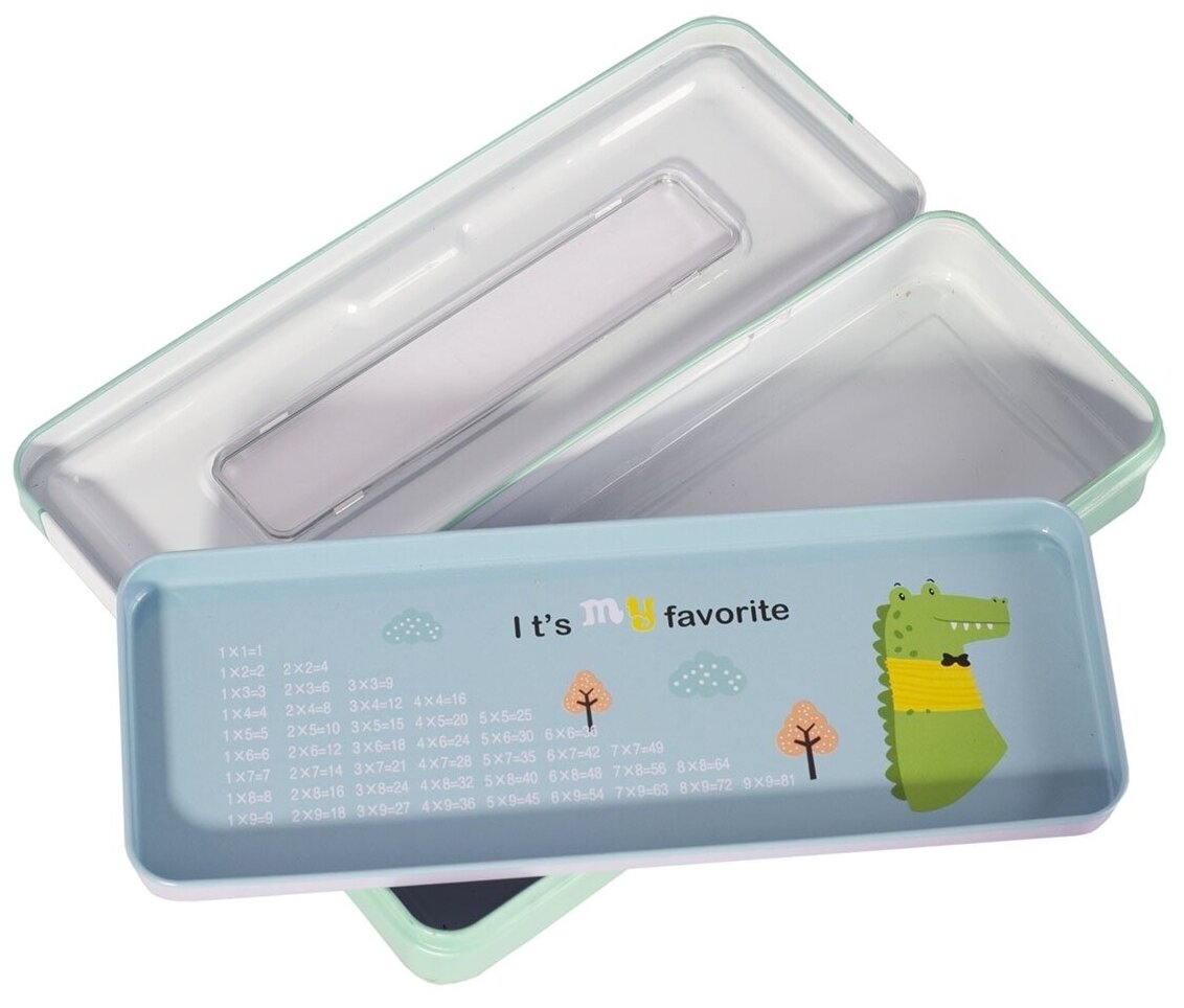10 цен на Пенал-футляр металлический Alingar "Animals" светло-зеленый, 2 отделения, 20*8*2,5 см, таблица умножения.