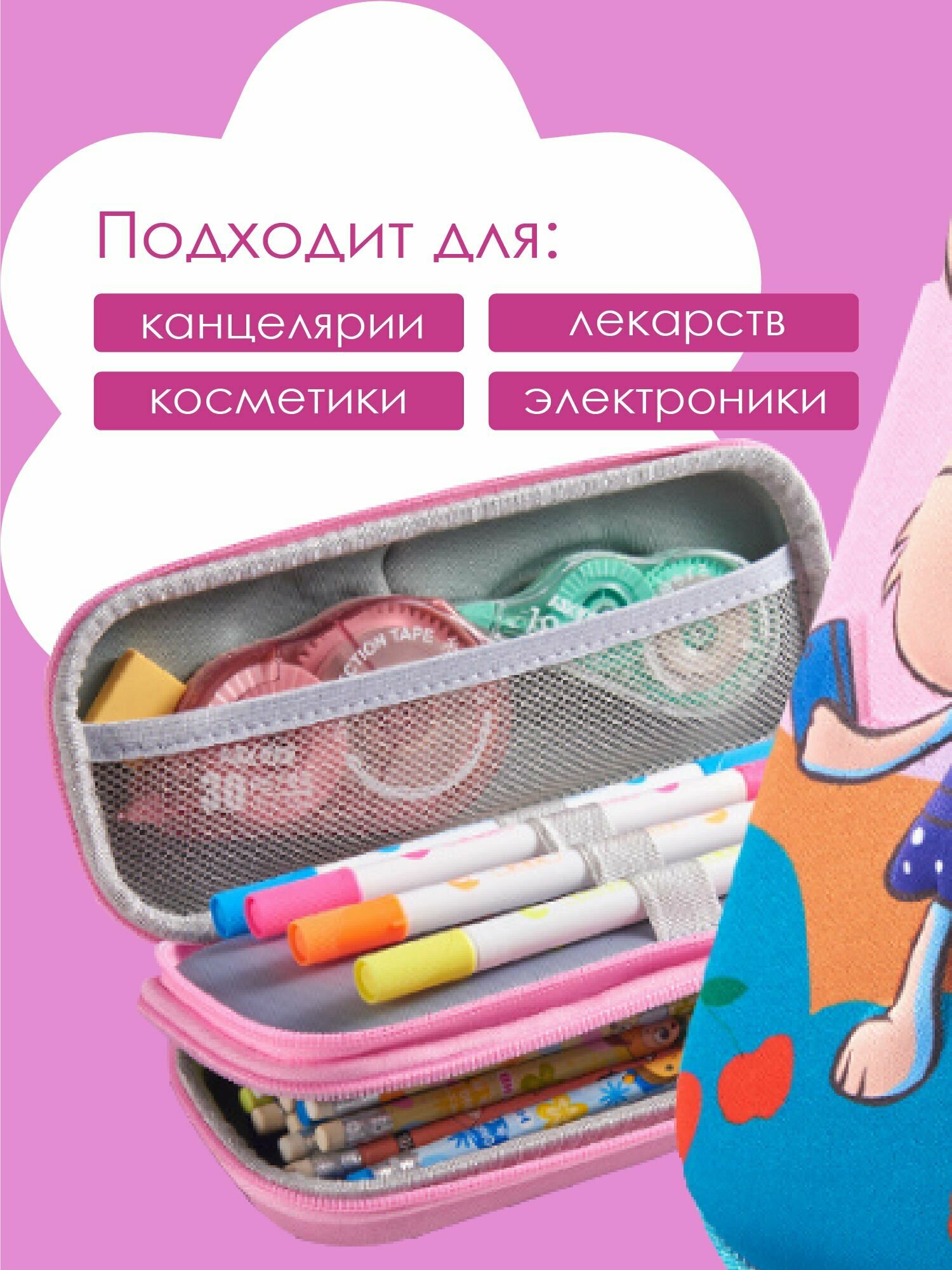 Вместительный 3D жесткий пенал на молнии, 2 отделения с держателем (мод.03.25) 635 ₽