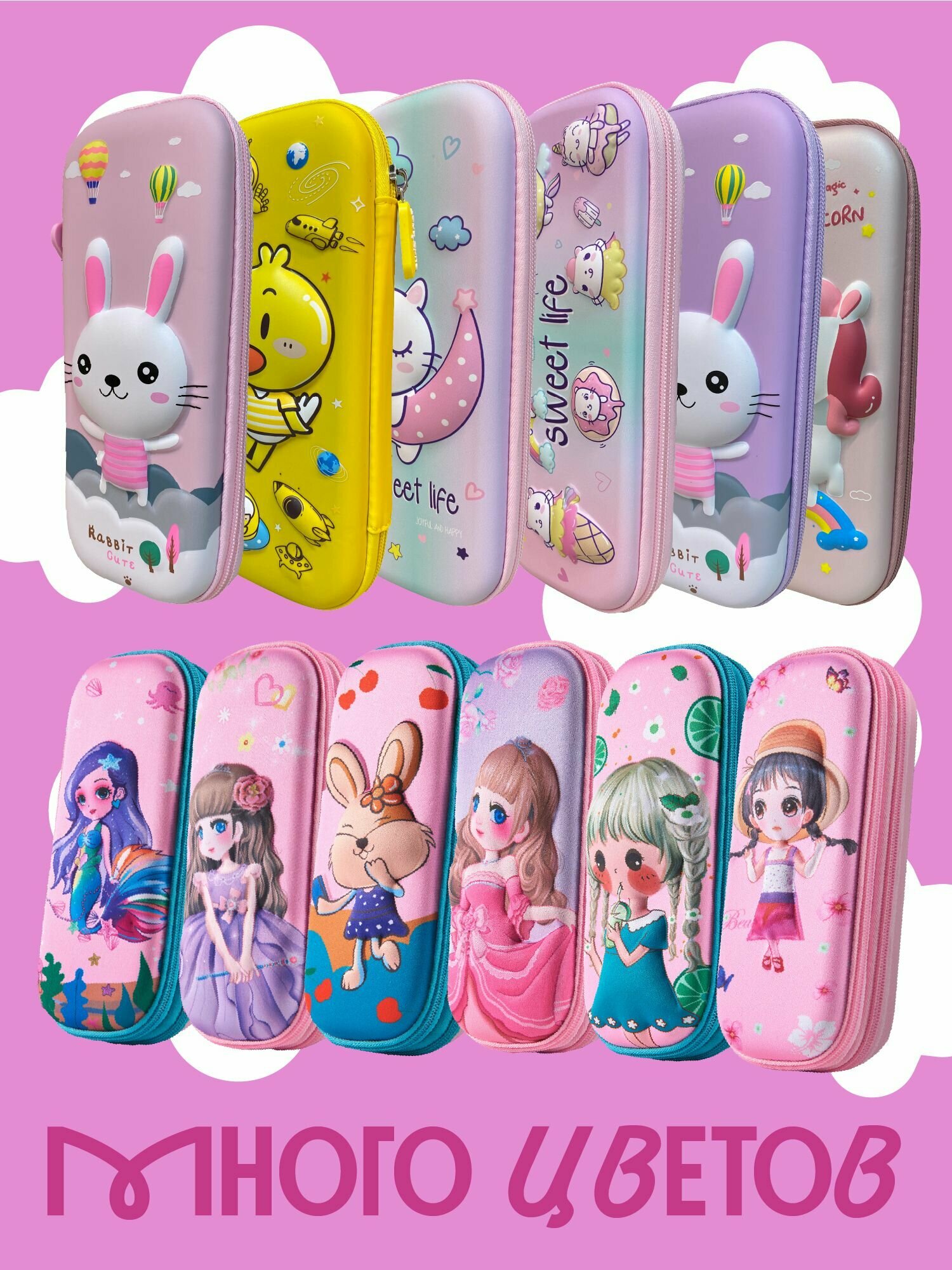 3D жесткий двойной пенал на молнии для мальчиков и девочек, 3 отделения с держателем (мод.03.73) 529 ₽