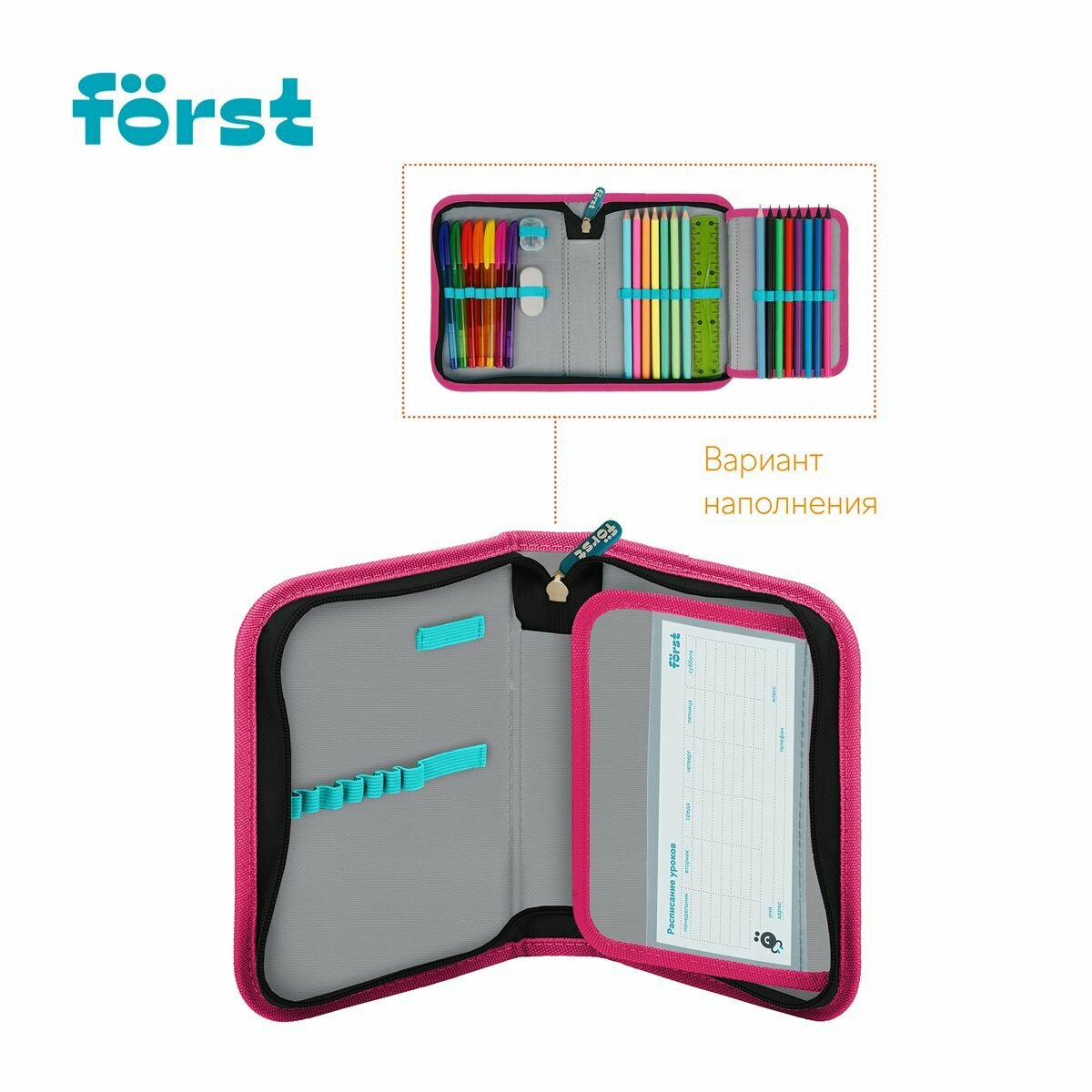Пенал 1 отделение, 200*140*40 Först "Fancy", дополнительная откидная секция, полиэстер 1 148 ₽