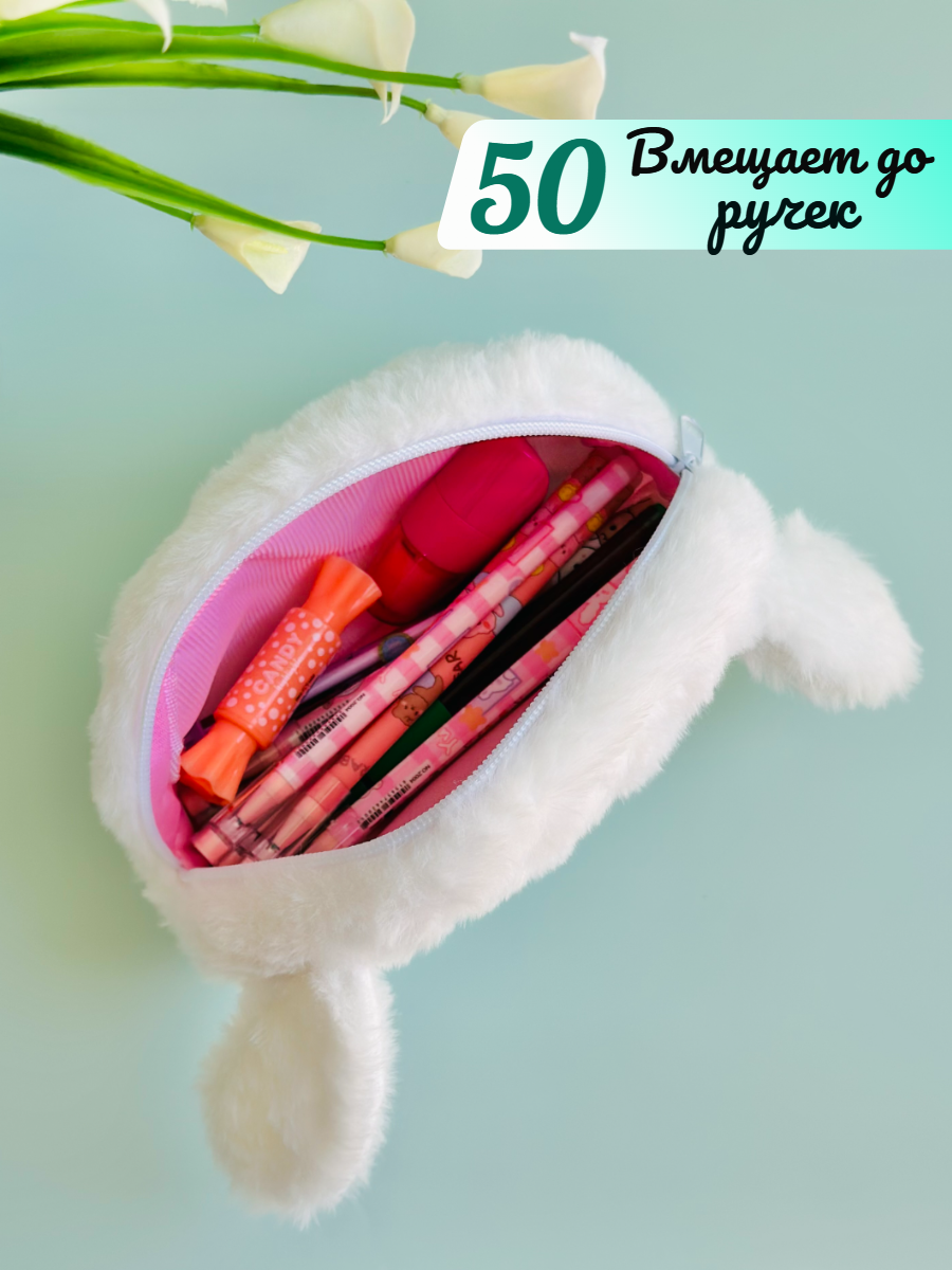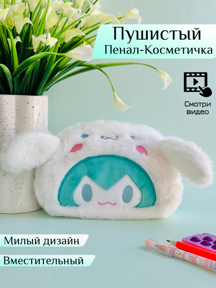 Отзывы на Пенал пушистый "Синаморолл", на молнии, с ушками, для школьников, мягкий, 20x13см, белый/мятный
